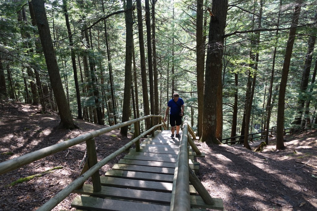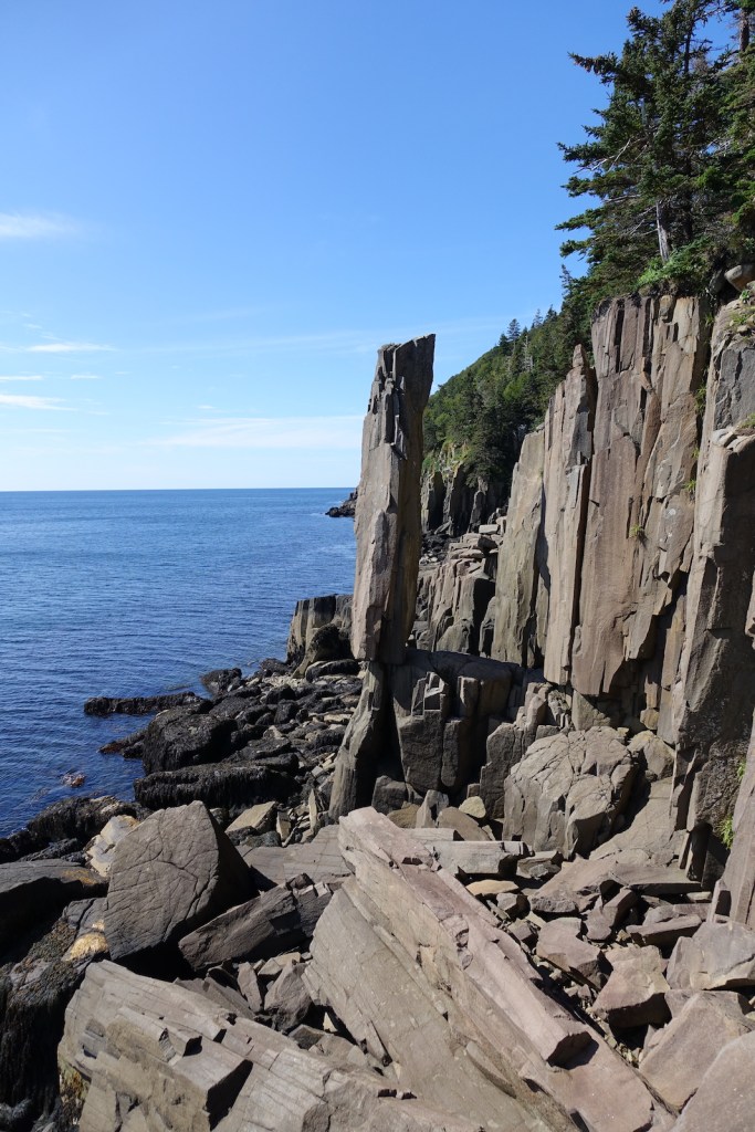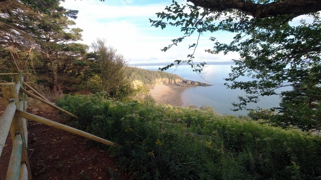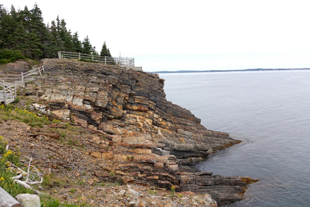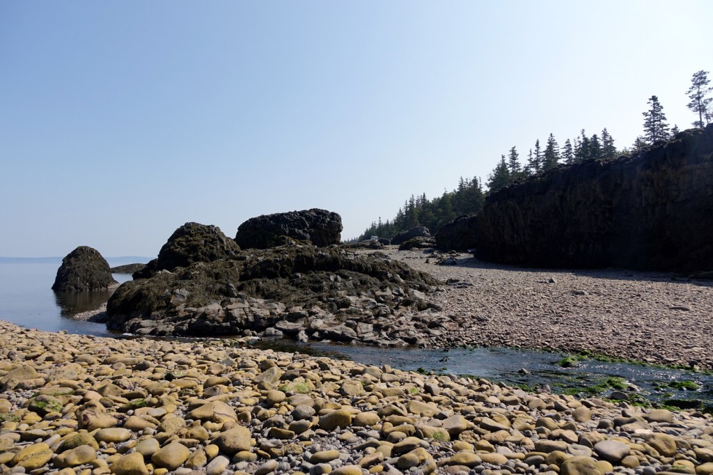 Puis, nous nous dirigeons vers le parc Ovens. Il s’agit avant tout d’un site de camping adjacent à la mer. Un court traversier est nécessaire pour traverser la rivière LeHave. Arrivé au parc, nous faisons une randonnée de 45 minutes sur le bord des falaises. Nous sommes subjugués par la beauté des points de vue. C’est très bien aménagé et, selon nous, à valait le détour. Ce site à été habité par des chercheurs d’or et vous pouvez tenté votre chance (en fait, je crois que vous risquez de perdre votre temps).