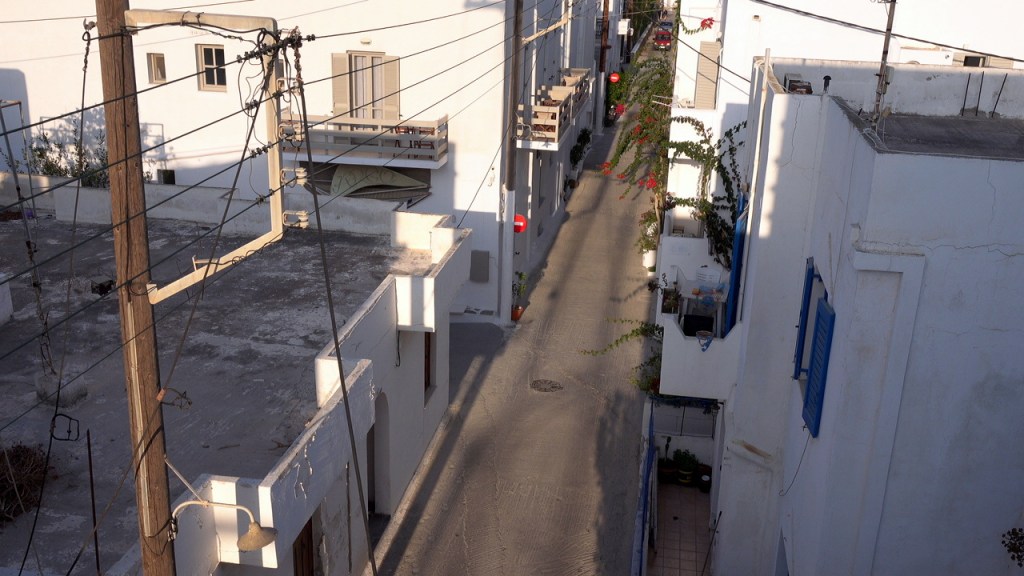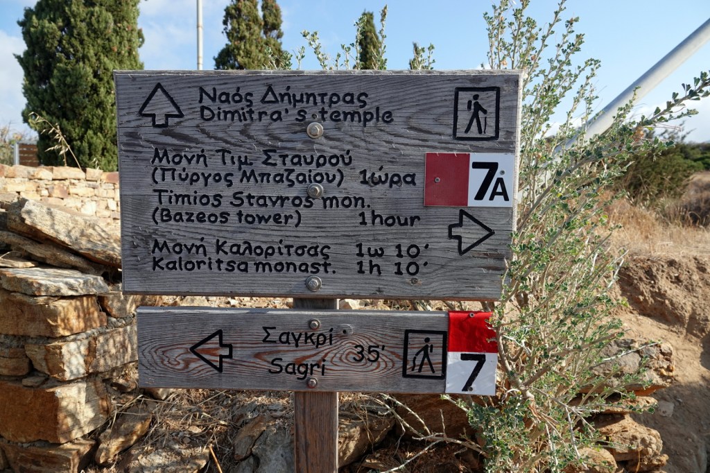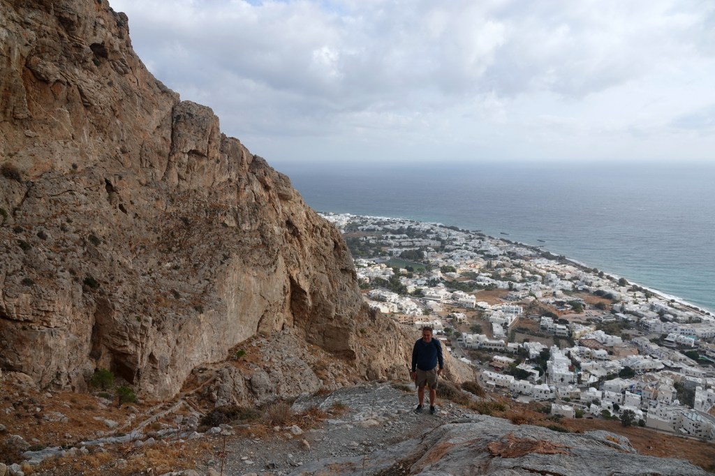 La rue de notre hôtel, nous remarquons les sens uniqueOn se dirige vers ses montagnes, du sport en perspectiveIL y a beaucoup de randonnée pédestre sur l’île. Elles sont bien identifiées. Dommage que nous n’ayons pas eu plus de temps.Le temple de Demeter, selon moi, un arrêt s’impose autant pour le temple que pour le panoramaL’intérieur du magasin de poterieL’Artisan nous montre comme il fabrique son pot à vinL roue pour écraser les olives et en faire une pateLa presse pour extirper l’huile d’olivesDes routes sinueuses et montagneusesMontagne et routes en lacet, ce fût le panorama de la journéeUn âne sur le bord de la route… il admire le paysage je croisLa ville d’Appolonas tout près du KourosLe Kouros de Naxos, on croit qu’il ne pouvait plus le transporter après l’avoir sculpté dans le marbreLes gens s’attroupent à la porte d’Apollon pour le coucher du soleilUn restaurant qui nous avait été conseillé et qui servait des mets traditionnels de l’île et des patates de NaxosEt pour terminer la journée, notre nouveau rituel : s’asseoir et regarder le soleil glisser lentement derrière l’horizon