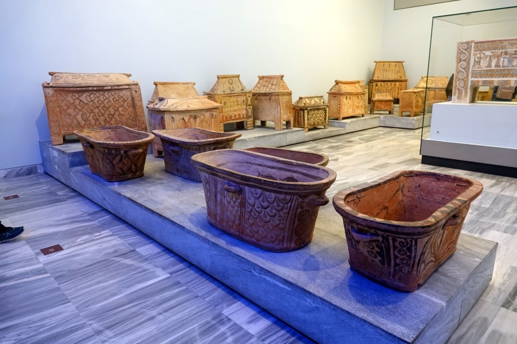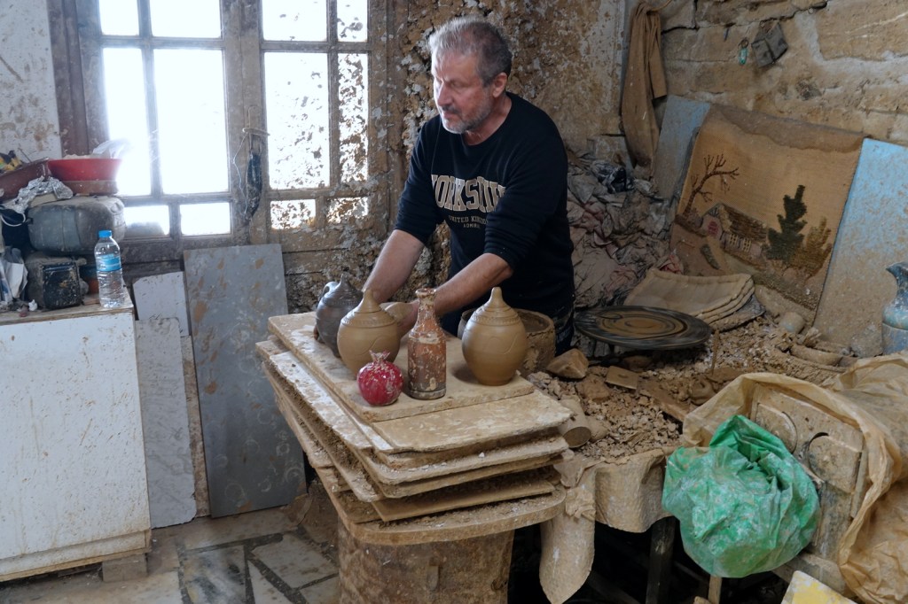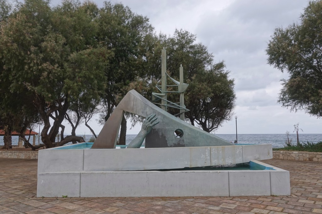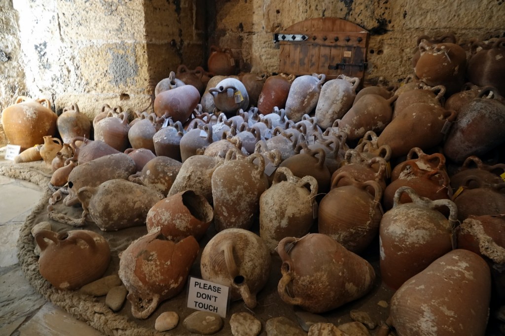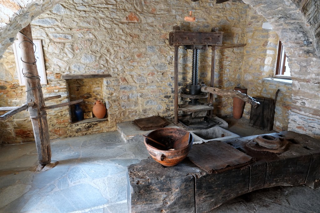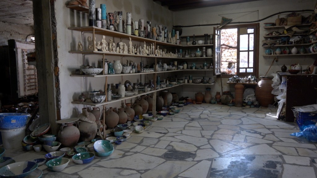 Nous établissons un itinéraire avec les points que nous avons choisi pour la journée. Premier arrêt, le temple de Demeter. Il s’agit de vestiges d’un sanctuaire du VIe siècle av. J.-C. consacré à la déesse des récoltes et de la fertilité… un précurseur du Parthénon. Il est toujours impressionnant de voir des vestiges si anciens si bien conservé. Au hasard de la route, nous voyons Damalas. Je me rappelle qu’il y a un musée sur le pressage des olives. Sans faire ni un ni deux, nous nous dirigeons vers cette petite ville encerclée par les oliviers. Nous croisons l’autobus de touristes croisé précédemment au temple et nous nous dirigeons vers le bâtiment d’où ils sortaient. Il s’agissait d’un atelier de poterie locale. Après discussion avec les gens de ce magasin, nous avons eu droit à une démonstration de l’art local. Une visite des plus intéressantes. Un peu plus loin, le musée sur le pressage des olives est instructif bien qu’il n’y avait personne pour donner les explications.