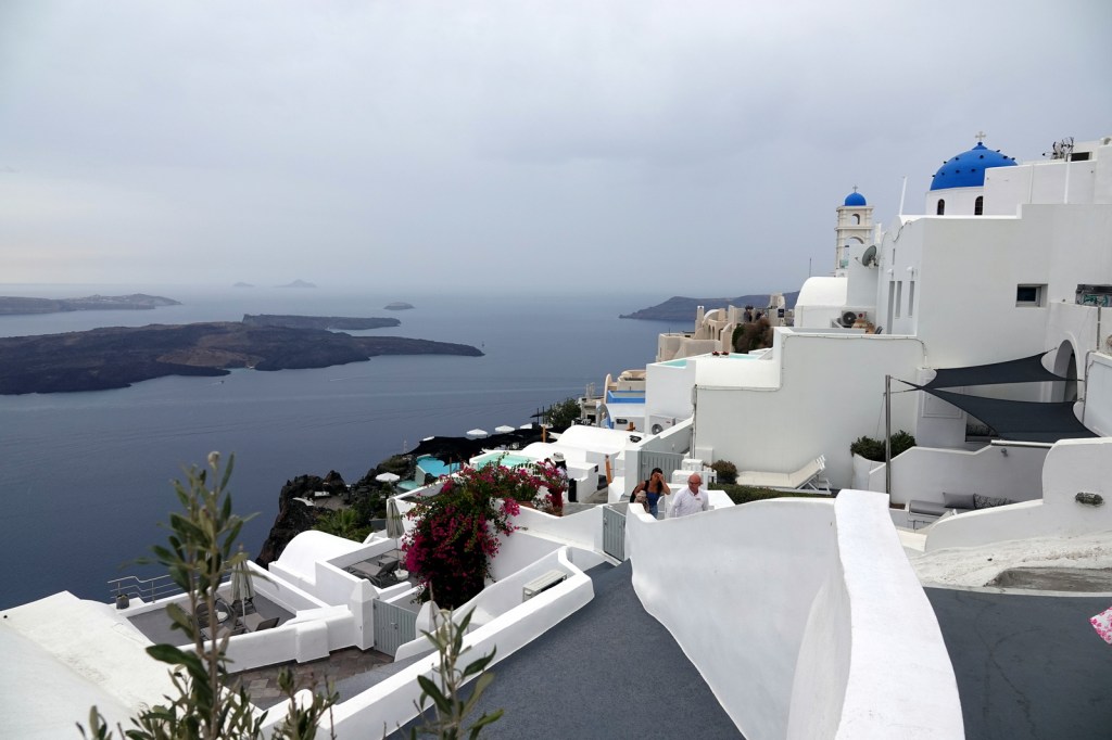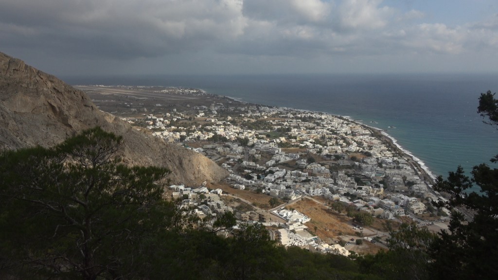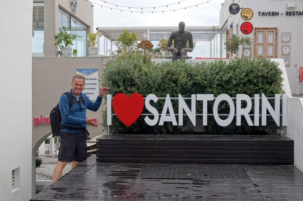 Vue de la Caldéra ave Ioa tout au bout de la pointeTiens des touristes, je les ai vu en quelque part.Jadis il y avait un chateau Vénitien, mais il a été démoli.Belle vue du haut de la ville de PyrgosLes vignes à Santorini. Les vendanges viennent d’avoir lieu. Ce n’est pas les vignes qu’on connait.Megalochiri: Une habitation historique avec la cuisine à l’extérieur et les toilettes doivent être à l’arrière aussi à l’extérieur. Elles étaient bâties avec du sol volcanique.Une version plus moderne des habitationsUn peu de couleurs sur la plage de sable noir longue de 2 km.Certains restaurants fournissent des parasols à ceux qui y mangent,Imeroviglion,: des points de vue de cartes postales (à la pluie)L’ile volcanique en face de Santorini, elle peut être visiter. Le volcan se trouve sous la mer. La file de gens à Oia qui attendent pour prendre quelques photos des toits bleus.Une séance photo privéeUne séance photo pour les impatients : trouver un endroit sans personne est un exploit.On aura un coucher de soleil finalement, avec la pluie et les nuages, on était sceptiqueNous ne sommes pas seuls à regarder le soleil et nous sommes hors saisonUn super souvenir de SantoriniUn salade grecque appelé, salade SantoriniUne salade Santorini – version locale de la salade Grecque