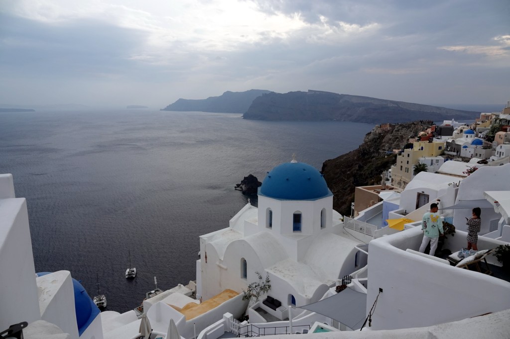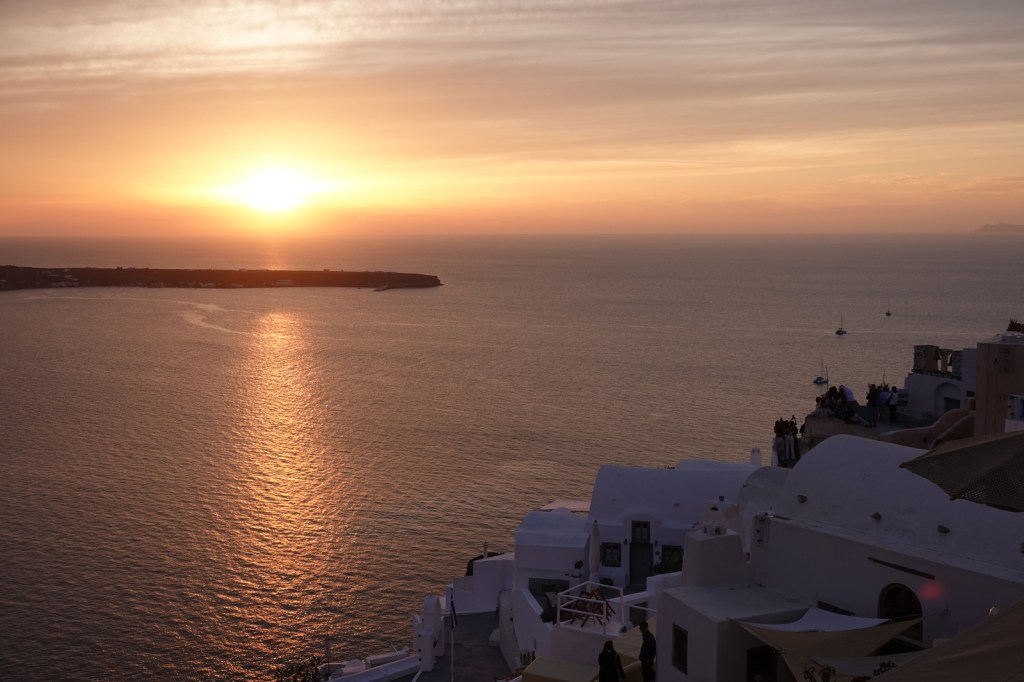 La conclusion se fait à Oia. C’est vraiment un capharnaüm. Des gens partout dans les rues étroites jumelé à une parade de gens qui veulent embellir leur compte Instagram. Les gens sont à la recherche de l’endroit idéal pour LA photo. À mesure que le soleil baisse, les gens s’attroupent pour admirer et surtout photographier sur le soleil qui a finalement pointé son nez avant de se fondre dans les nuages. Le spectacle est plus la foule que le coucher du soleil et dire que c’est la fin de saison.