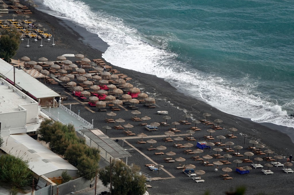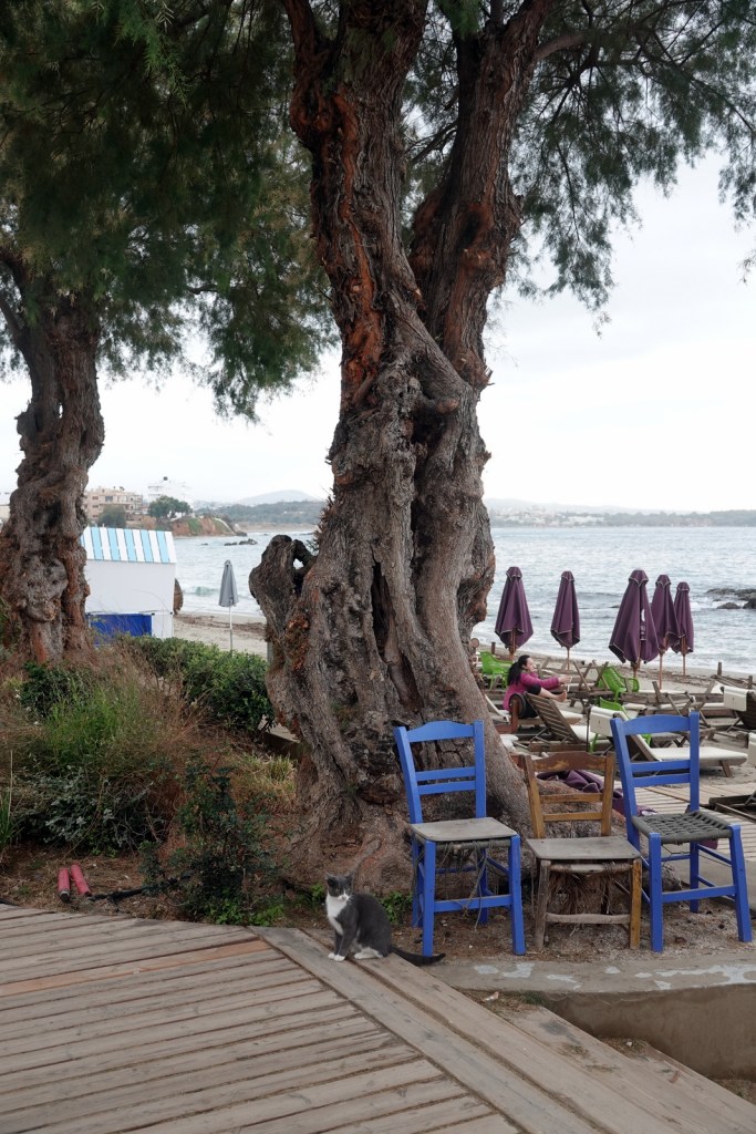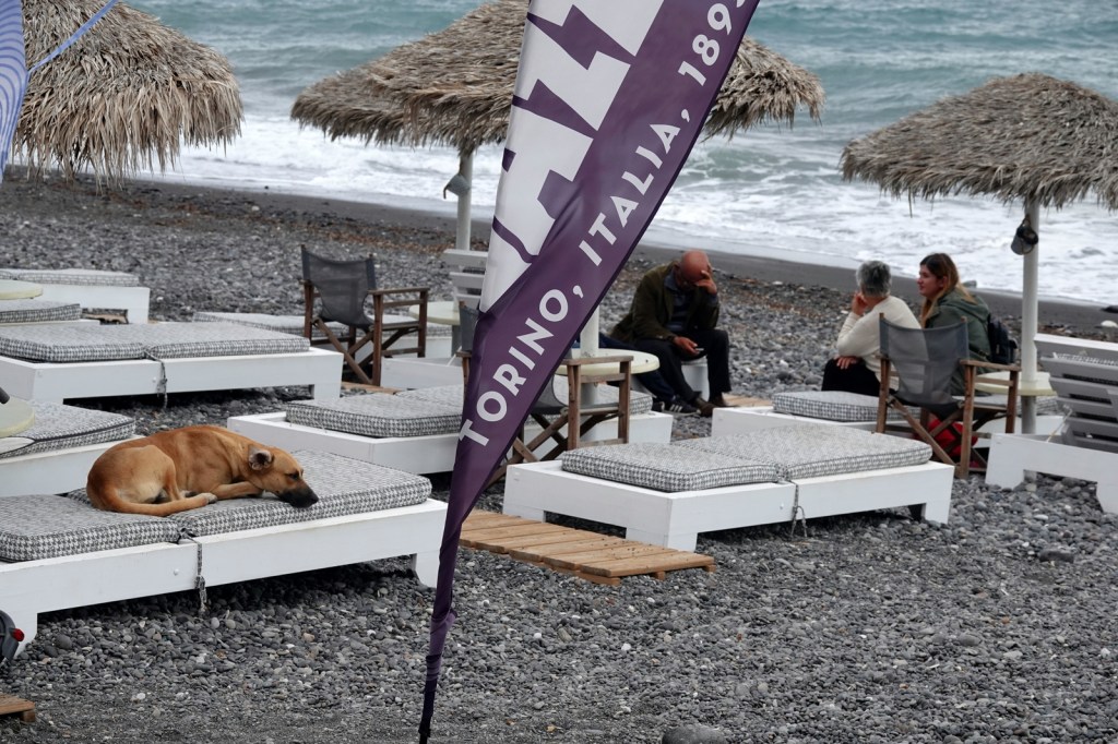 Dernière journée à Santorini. Pourquoi ne pas gravir la montagne près de l’hôtel, ce sentier abrupt nous mène à des superbes points de vue sur Kamari. Une minuscule randonnée comparée à celle d’hier. Le ciel est cependant encore nuageux. Nous avions prévu aller dans une basserie locale à plus de 2 km de l’hôtel, mais en utilisant Google Maps, le logiciel nous dit qu’il est fermé aujourd’hui. Nous décidons de nous promener sur la plage. Le vent enlève le goût de se baigner à plusieurs personnes. De notre côté, nous découvrons cette partie de l’île que nous avons négligé même si tout près de l’hôtel. Cette fois, nous sommes demeurés confortable dans notre choix de repas et à notre étonnement, c’est l’une des meilleures pizzas du voyage (et même plus).
