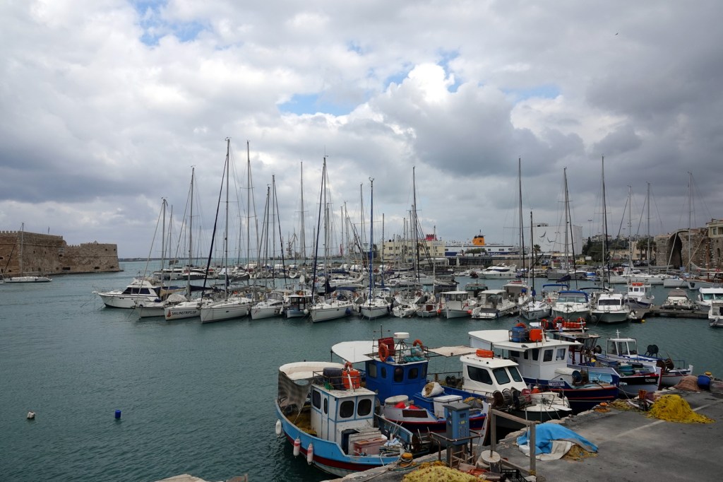 En descendant à Héraklion, on remarque tout de suite le changement de rythme, le climat calme et serein des îles est remplacé par la vie trépidante des villes : Traffic, klaxon, bruit d’une circulation plus intense. Cette ville de 200 000 habitants, la 4ième en importance de Grèce possèdent l’ADN des centres-villes. Nous la découvrions demain. En passant, l’internet de l’hôtel est en panne suite à une tempête de vent.