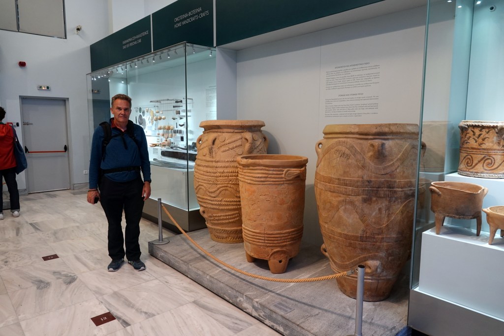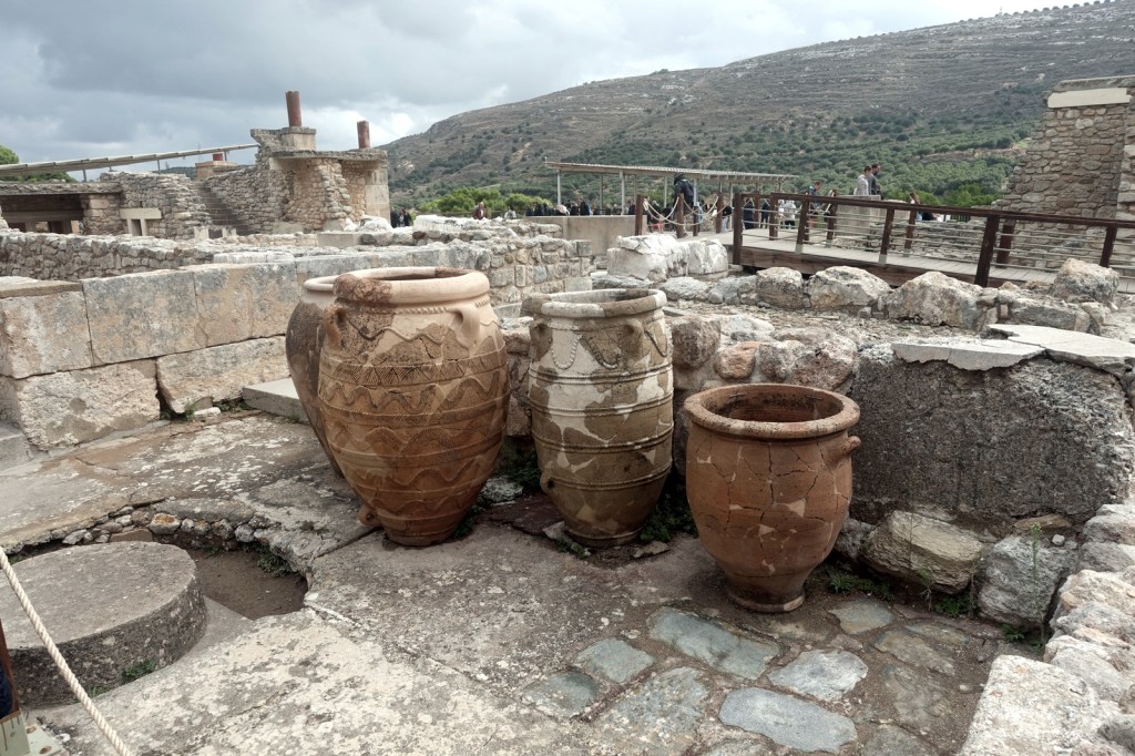 La crète est beaucoup plus verte que les îles visitées jusqu’à maintenant. Note: les oliviers doivent être à une hauteur de moins de 600 m pour donner des fruits.Une partie des ruines ont été reconstruites avec les matériaux originaux.Notre guide nous explique les méthode de construction de l’époqueLes fresques ont été reconstituées. Les hommes avaient la peau foncée car ils travaillaient à l’estérieur et les femmes la peau claire car elles étaient à l’intérieur. On remarque ici l’influence égyptienne.Les vases sont énormes et servaient à entreposer.Nous sommes devant la section la plus célèbre de ce site.Des inscritions sur les murs indiquent lla direction. Ici c’est le trident de Posseidon.La basilique de St-Marc, la plus impressionnante jusqu’à maintenant.Le vieux port. Cette photo ne fait pas justice au vent présentEncore le port et ses nombreux bateauxLe fort vénitien, une zone d’affluence.Il faut se maintenir à une certaine distance de la mer. Certaines personnes l’ont appris de la manière humides.L’intérieur du fort, bien reconstitué et bien documenté.Des amphores de vins. Pleinne, on serait prêt pour faire la fête.Le dessus du fort à la merci des vents.La maquette en bois du palais de Knossos aussi appelé labyrynthe. Selon la mythologie, ce serat la résidence du Minautore (mi homme, mi taureau).Des jarres encore plus grandes. Les anneaux servaient aux cordes.Des bains qui servaient aussi de sarcophage.Des vases dans le musée archéologiques. Même vide ils sont loins d’être léger.