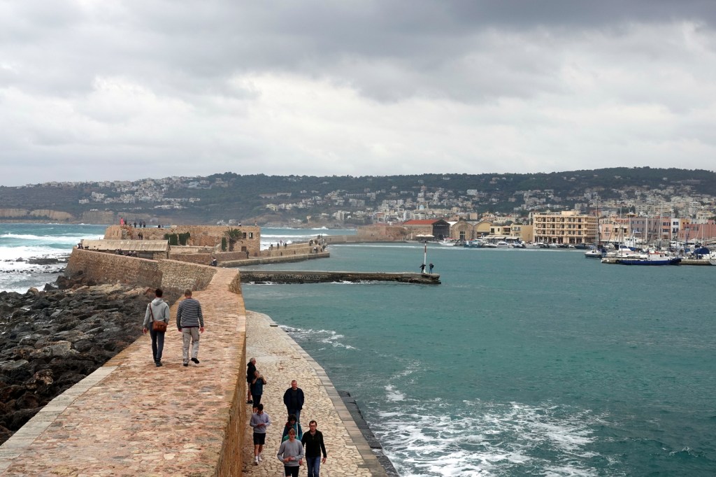 De retour au centre-ville, la ville s’anime. Nous déambulons dans les rues commerciales animées jusqu’à la vielle ville et au Fort vénitien deKoules ou la mer frappe violemment les murailles du fort. Une visite qui est fort intéressantes et remplies d’histoire.