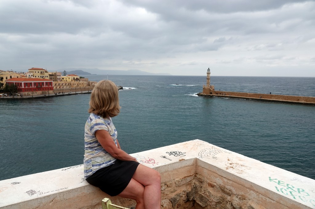 Le temps est plutôt incertain. Nous choisissons de nous balader dans la vieille ville et de visiter le vieux port et sa partie vénitienne. Les vagues essaient de s’emparer du trottoir au grand désespoir des passants. Nous vagabondons jusqu’au phare vénitien tout en évitant les vague qui essaient de s’immiscer avec fureur de l’autre côté de la muraille qui se rend au phare. Nous apprécions vraiment le caractère de cette ville.