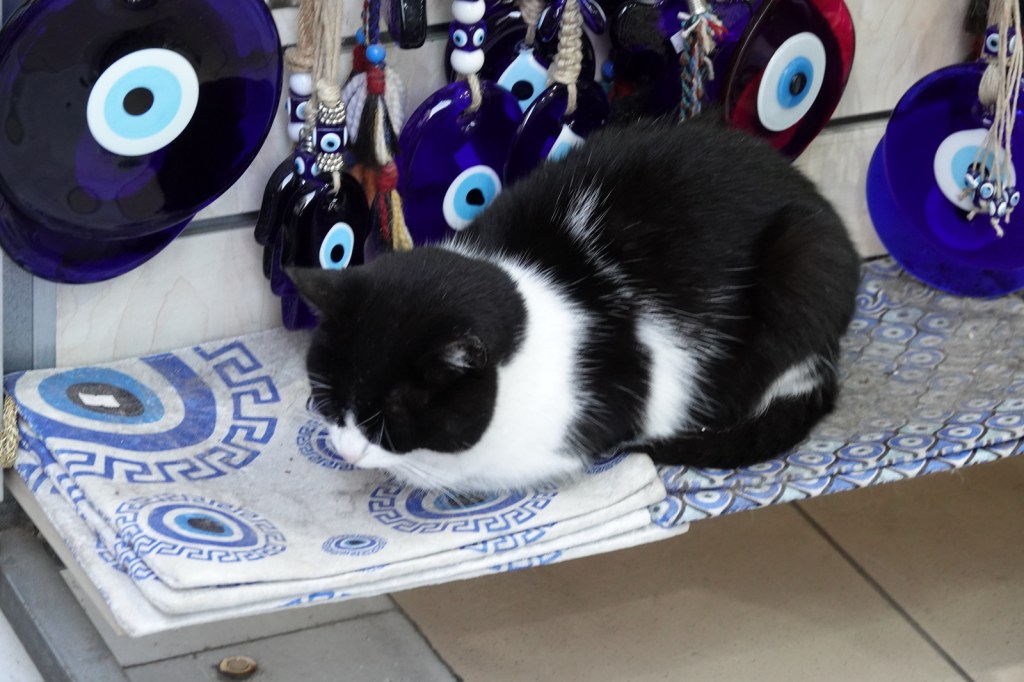On se croirait presque à Venise, bien que l’eau est ici beaucoup plus belleDes rues plus étroites cachent de belles découvertesOn aime se perdre dans les petites ruelles.Beaucoup de boutiques de vases et contenantL’eau passe parfois par dessus le trottoirIl est encore tôt, les terrasses attendent que les visiteurs (les plus braves)Le phare au bout de la murailleUn magasin flottant : Éponge et CoquillageNous profitons du momentUne marque qui a été sèche malgré toutLa cathédrale de la ville, un arrêt rapideUn repas grec à l’abri du ventPeu à peu, la nuit gagne du terrain, nous indiquant qu’il est temps de retourner à l’hôtel