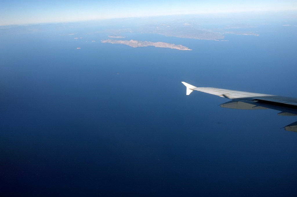 Départ tôt de Chania par avion. Le soleil est de retour pour nous narguer. Le chauffeur de taxi qui nous conduisait à l’aéroport nous a parlé de la température de la région. Elle est constamment ensoleillée sauf en octobre et à partir de décembre. Les vents que nous avons connus surviennent en août et en octobre. Mais la température est imprévisible.