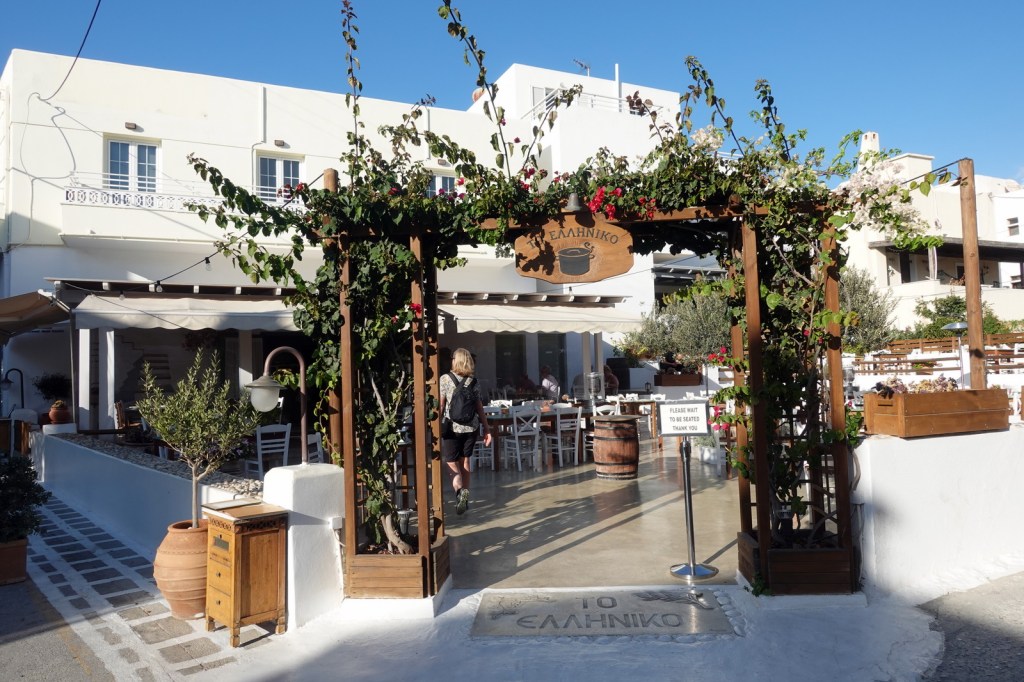 En haut, nous cherchons le sentier de Fira à Oia, une randonnée de 10 km, la plus belle de Santorini pour plusieurs. La durée devait d’être de 3 heures, c’est sûrement sans regarder tous les merveilleux panoramas. Il nous a fallu plus de 4h30 avant d’arrivée à notre destination (un peu exténué). Mais l’énergie de la ville (et un café), nous ont remis sur pied. Les foule de touristes et les chasseuses d’Instagram foisonnent dans tous les racoins de la ville. Nous revivons ce que nous avions vécu la veuille. Quelques photos et nous sautons dans le premier bus pour Fira pour une correspondance à Kamari (ou nous restons). J’étais un peu déçu de ne pas rester du côté de la caldera, mais il y a 2 avantages : les hôtels sont beaucoup moins chers et nous sommes tout près de la plage. De plus, quand j’ai vu les gens se promener avec leur valise dans les sentiers (et escaliers) de Fira et Oia, j’ai apprécié le service de navettes qui nous mène aux portes de l’hôtel.