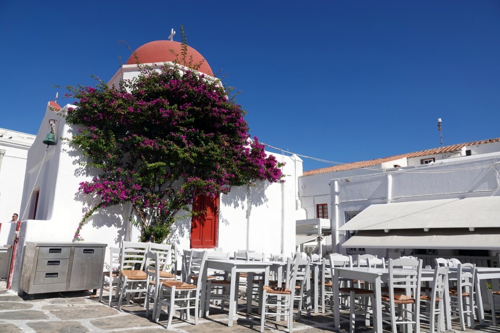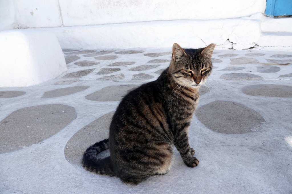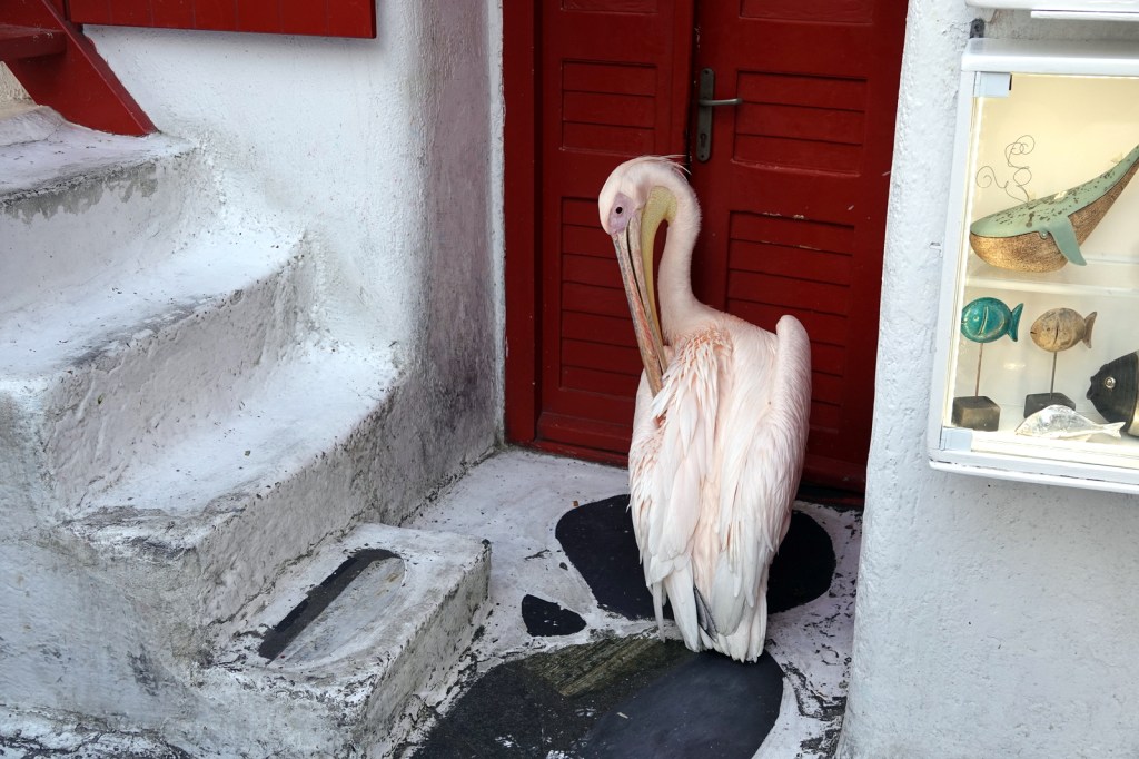 Finalement, nous retournons au vieux port à la recherche de Petros. Comment trouver un pélican à travers les méandres de ruelles. Au détour d’une de ces ruelles, Petros se fait une beauté au plaisir des passants. Mykonos, c’est se perdre dans les dédales de ruelles et de faire des découvertes à chaque tournant.