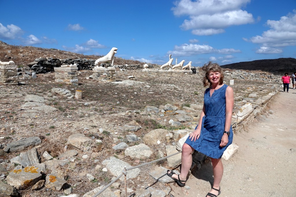 Le vent souffle toujours sur Mykonos. Lorsque le vent ne diminue pas durant la nuit, c’est une situation de tempête (de vent). Nous avions décidé d’aller sur l’île de Delos. Un des sites archéologiques le plus grand de la Grèce. Il fait partie du patrimoine mondial de l’UNESCO. Nous pouvons s’y promener par nous-même ou bien de faire un tour guidé. Nous avons choisi cette dernière option. Nous pouvons avoir un tour en français à partir du jeudi.