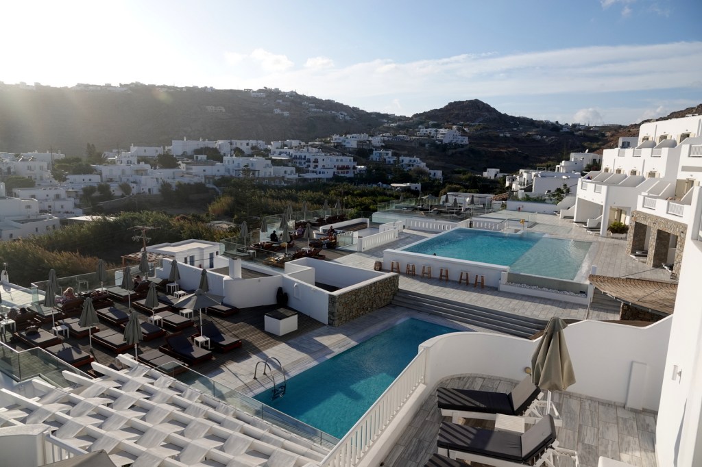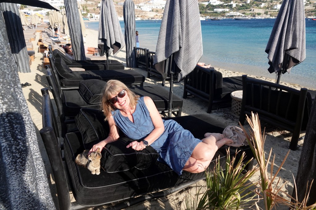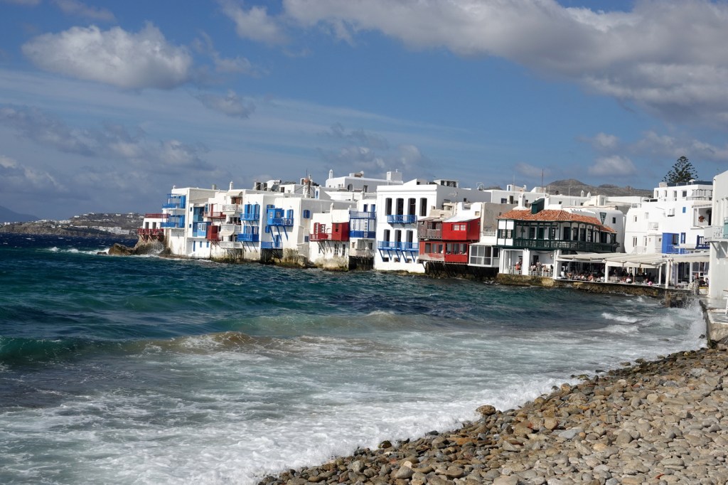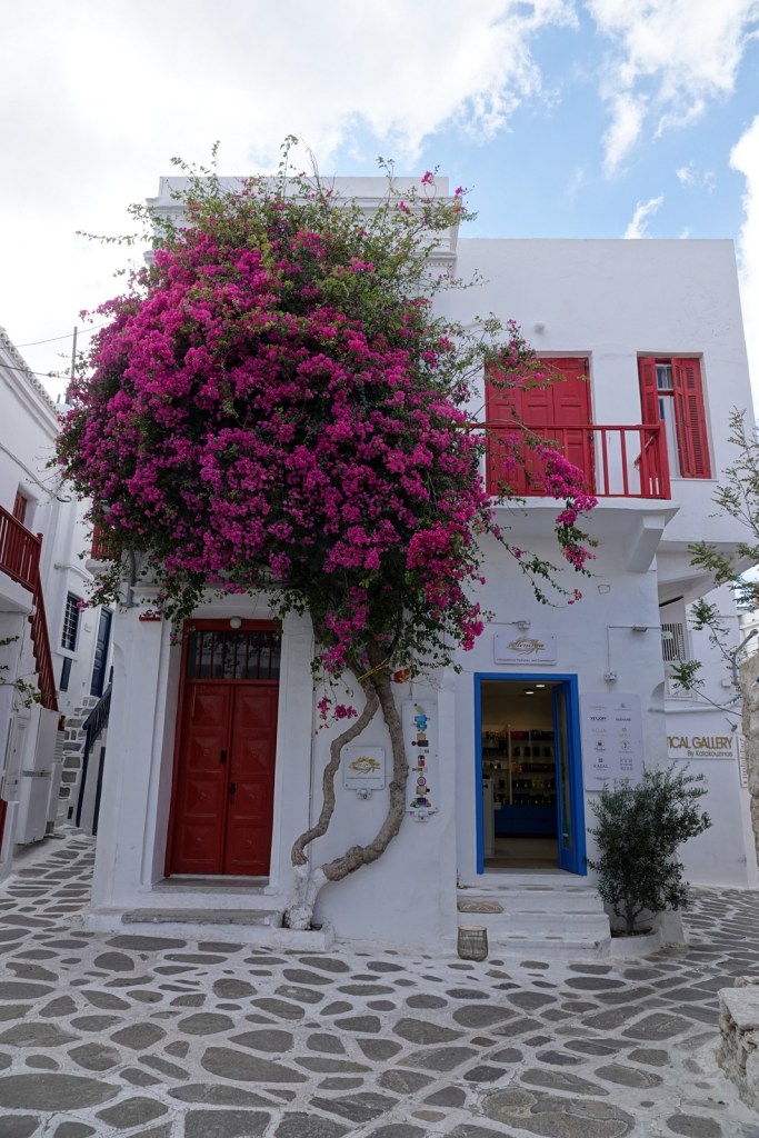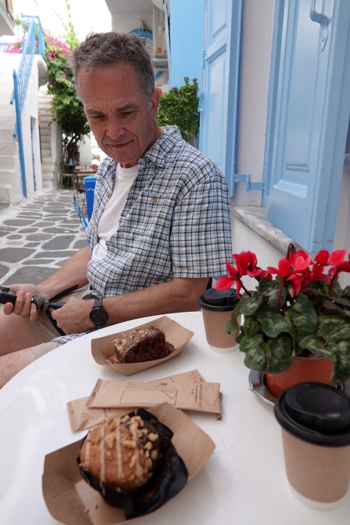 Au retour, nous nous sommes laissés guidé dans les dédales de Mykonos. Lorsque cette ville nous avale, elle ne veut plus nous laisser ressortir. À l’abri du vent, nous sélections tantôt la gauche et tantôt la droite au hasard des ruelles qui nous inspirent. Seul l’envie de visiter quelques plages nous justifie de retourner à l’auto et d’aller écouter le chant des vagues et les grondements d’Éole, dieu du vent.