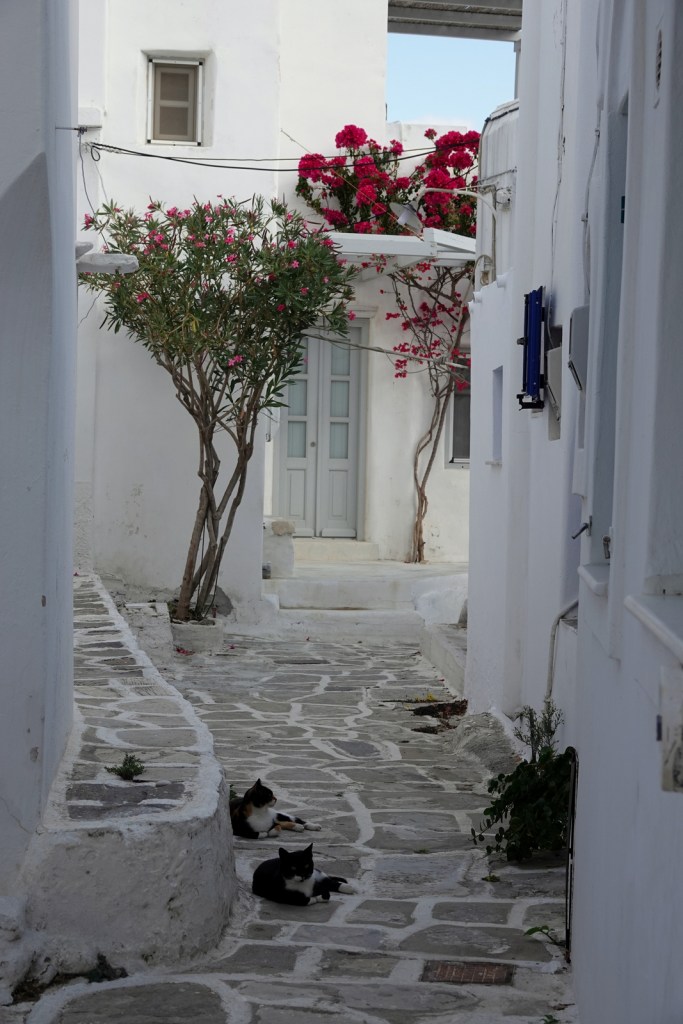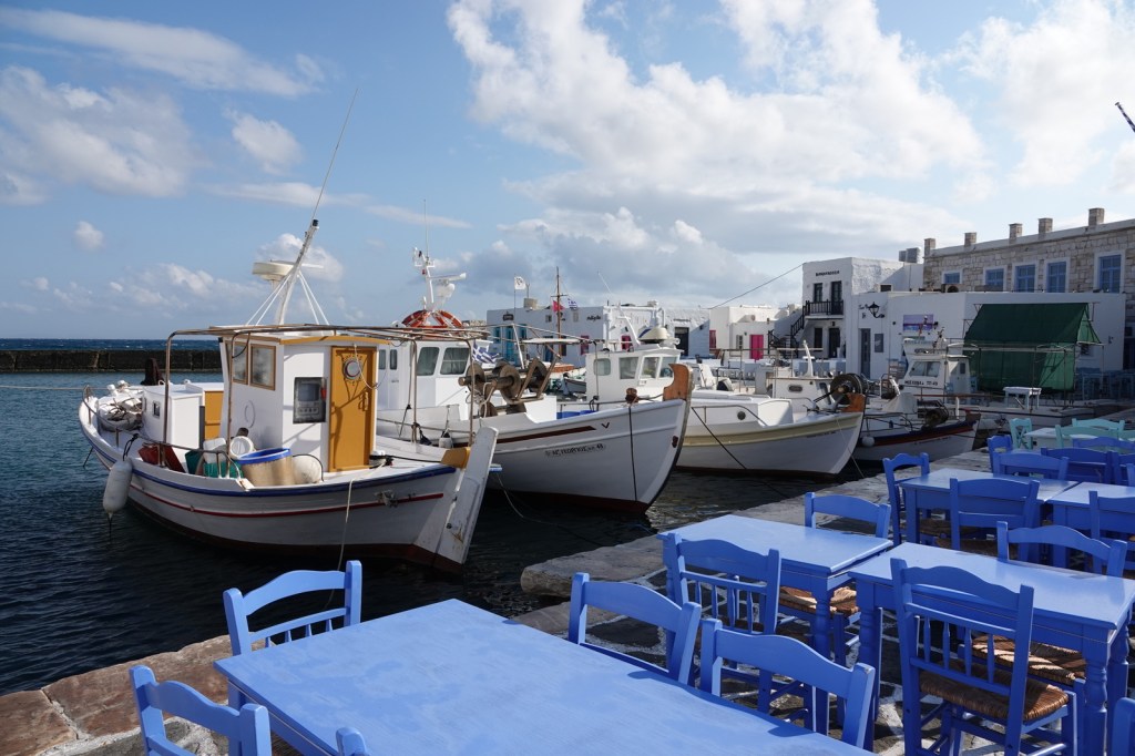 Nous avions oscillé entre l’idée de prendre le bus, ou celle de louer une auto. Finalement, l’auto a finalement gagné. Notre auto nous amène vers Naoussa. Un charmant petit port de mer. Des pêcheurs s’affairent à leur tâche tandis que les restaurateurs préparent la devanture de leur restaurant.