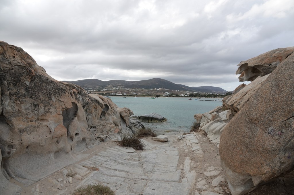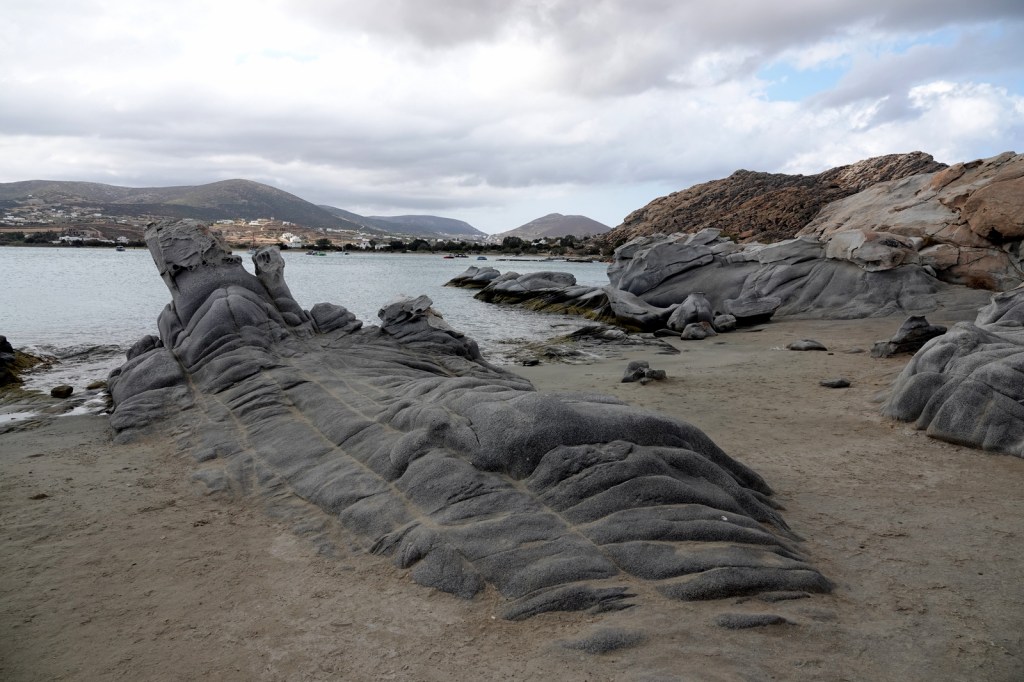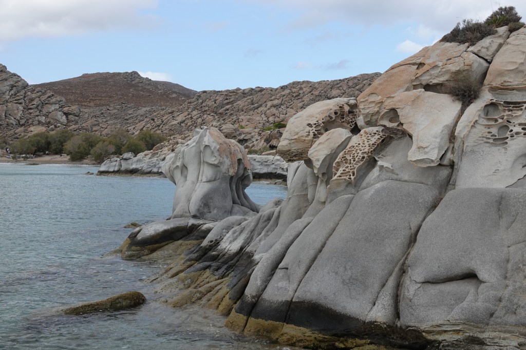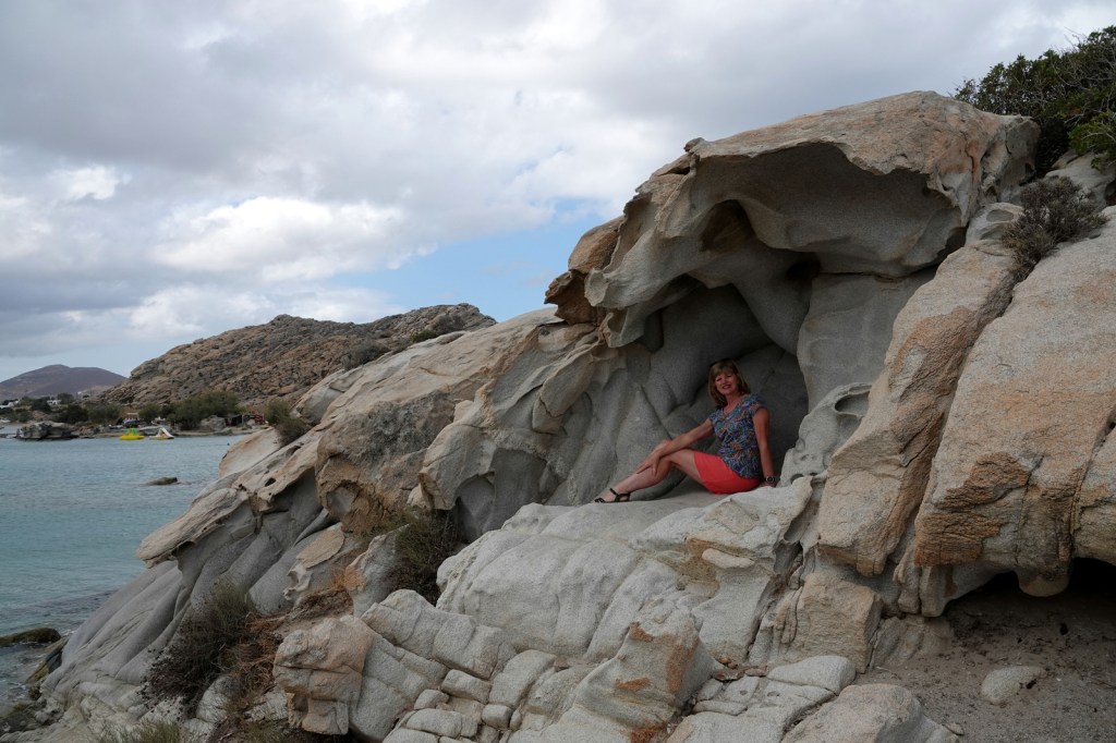 Puis, la plage de Kolimbithres nous interpelle. Le vent a éloigné les baigneurs, la plage était presque vide. Il ne s’agit d’une plage mais plutôt de nombreuses petites plages séparées par des formations rocheuses. Ces masses de granit ont été sculptés par l’eau et le vent depuis des millénaires. Pour plusieurs, il s’agirait de la plus belle plage de Grèce. Nous y sommes allés par curiosité et nous y sommes restés par enchantement. Par moment, nous nous croyions dans le décor des Pierrafeu.