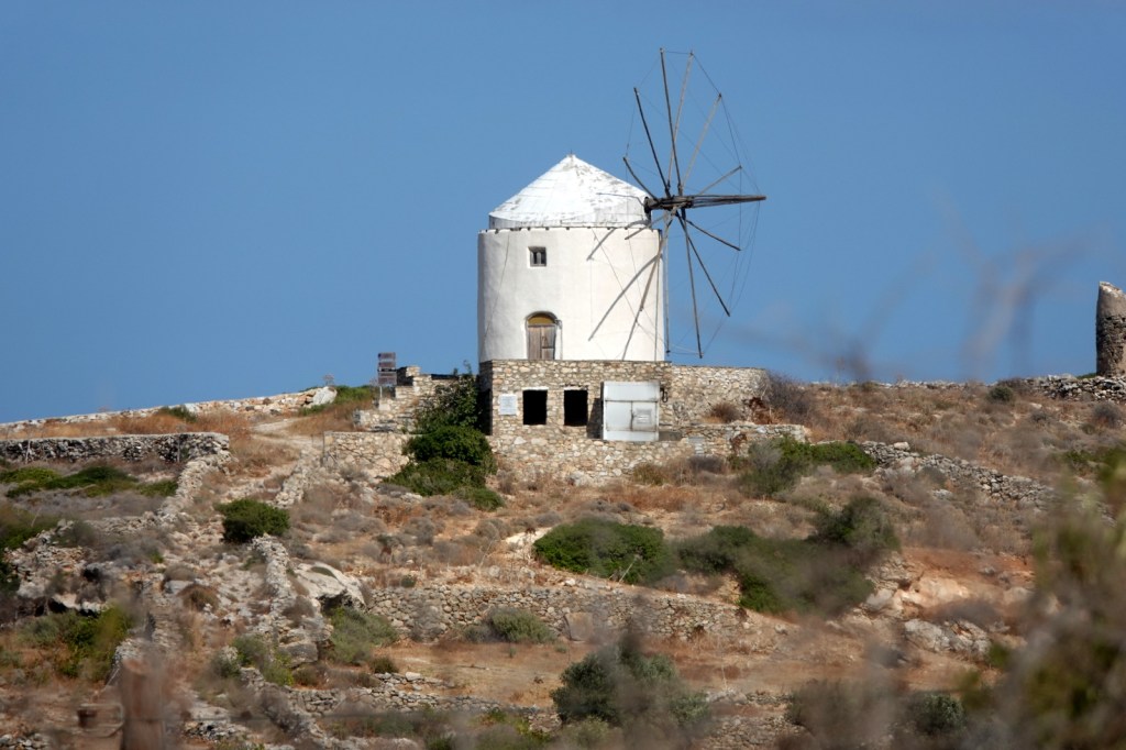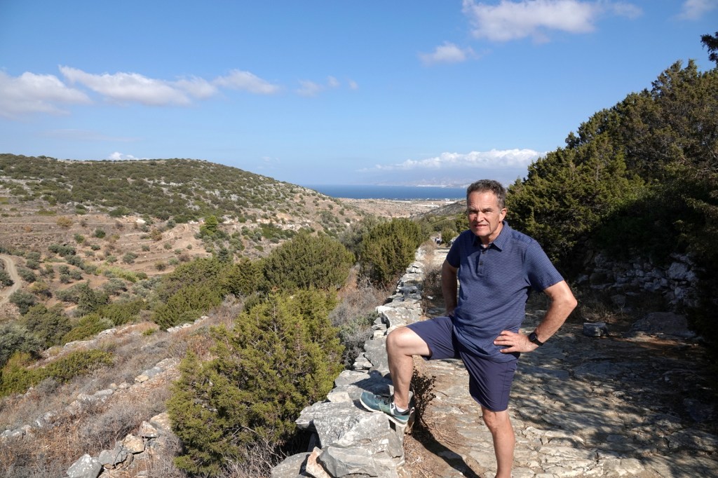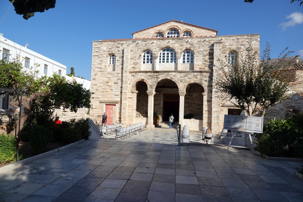 Nous découvrons que la route Byzantine est tout près : le plus vieux sentier pédestre de l’île d’une longueur de plus de 3 km. L’histoire et les vues spectaculaires se marient lors de notre randonnée. Mais le temps nous pousse. L’église aux Cent Portes nous attend, il s’agit de l’un des monuments paléochrétiens les plus importants en terre grecque. 99 portes sont visibles, selon la légende, la centième sera découverte quand Constantinople (Istanbul) sera grecque.