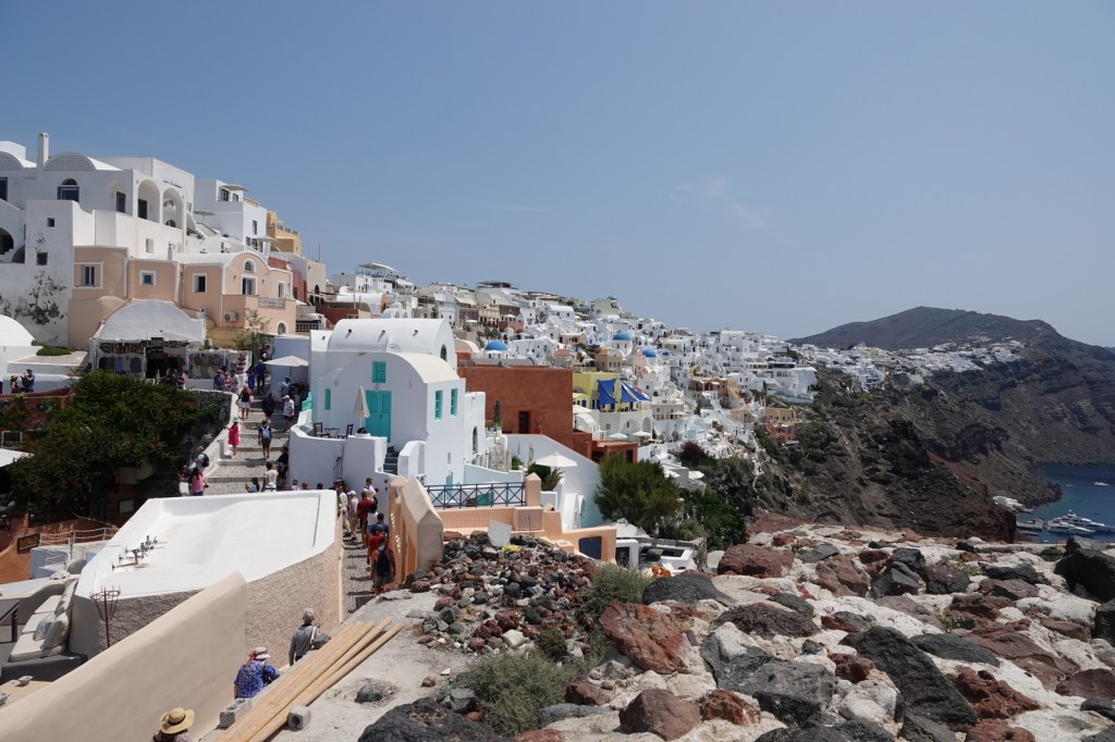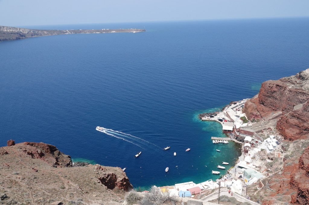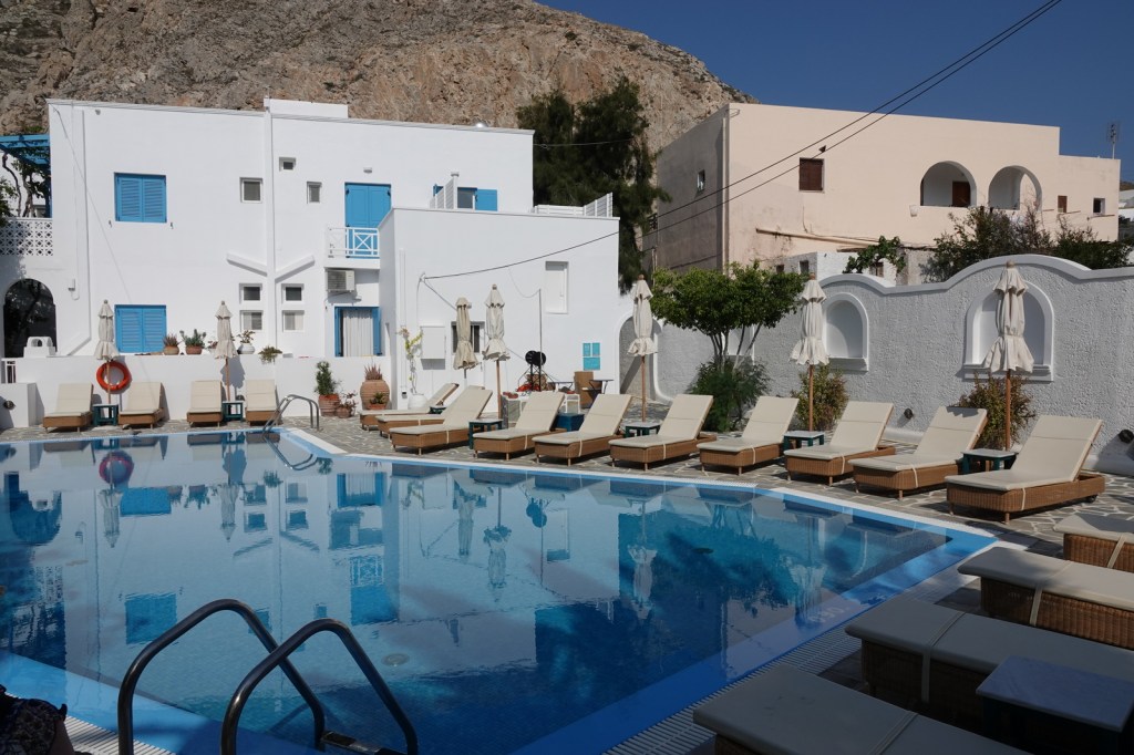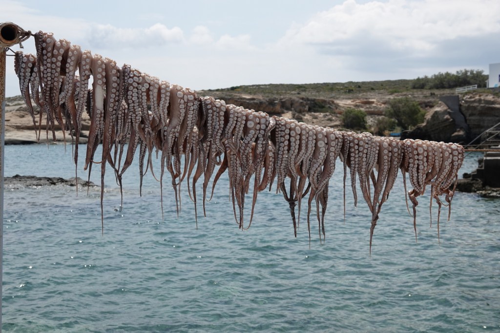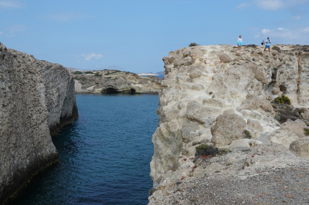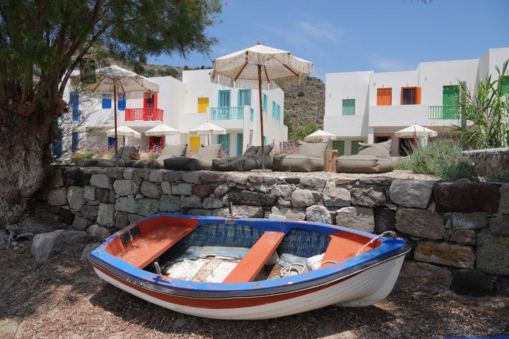 Les charmantes villes de Mandrakia et de Klima sont des trésors cachés à Milos. Leurs maisons de pêcheurs colorées, avec leurs volets bleus et leurs façades vives, créent une atmosphère pittoresque. Les bateaux de pêche colorés qui flottent sur les eaux calmes ajoutent une touche de magie à ces villages. C’est toutefois une aventure que de conduire dans les routes à une seule voie surtout quand nous rencontrons d’autres autos.