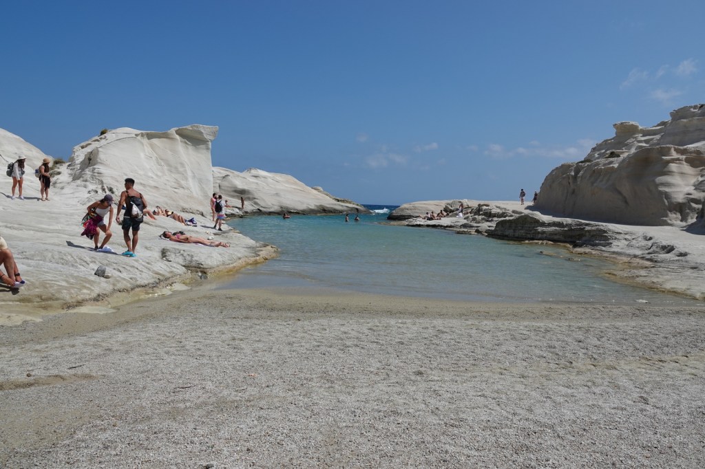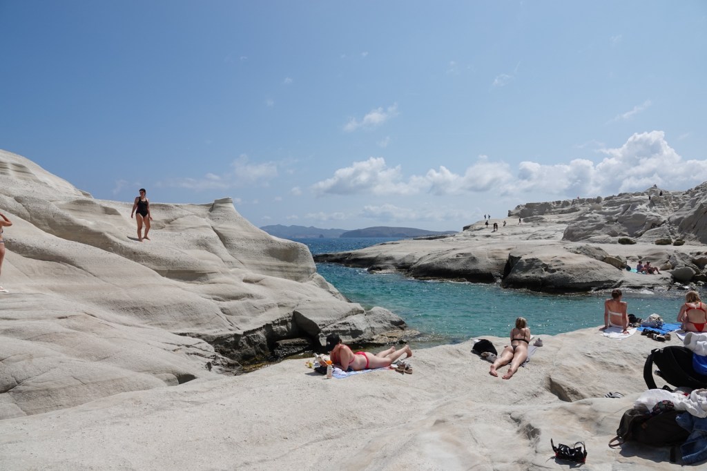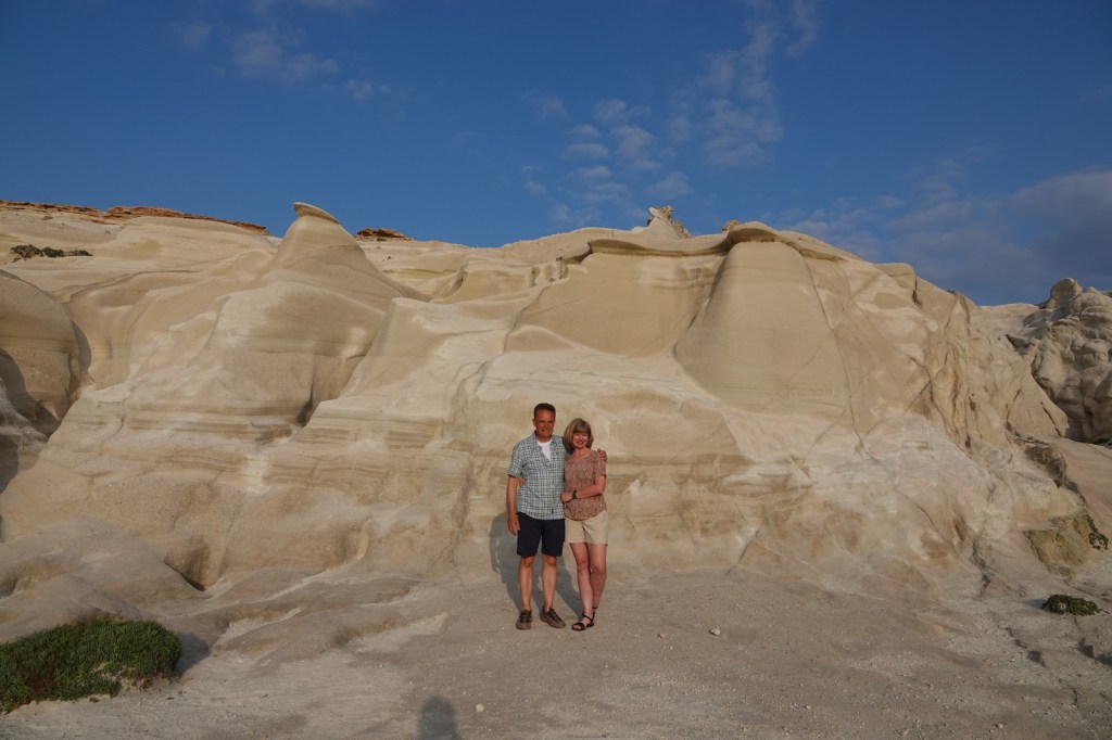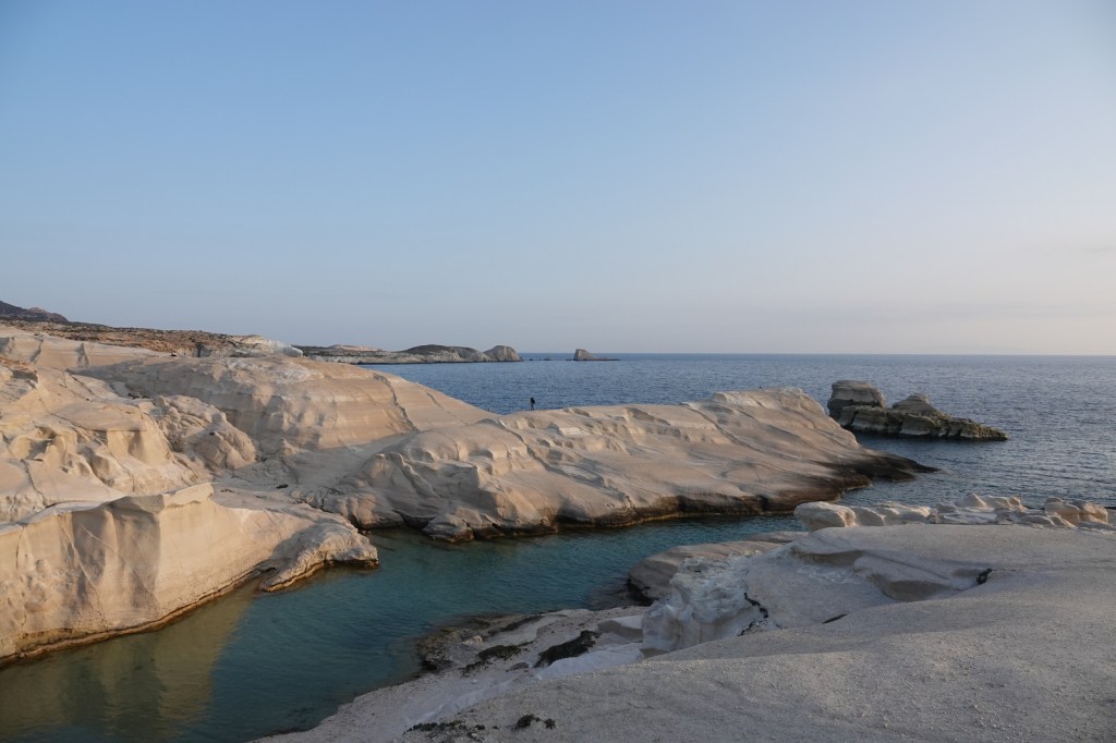 Aujourd’hui, avant le déjeuner. Nous avons décidé de commencer notre journée tôt en retournant à la magnifique plage de Sarakiniko, à Milos. À notre grande surprise, plusieurs personnes étaient déjà présentes pour admirer le lever du soleil. Nous en avons profité pour faire quelques prises de vue à l’aide d’un drone.