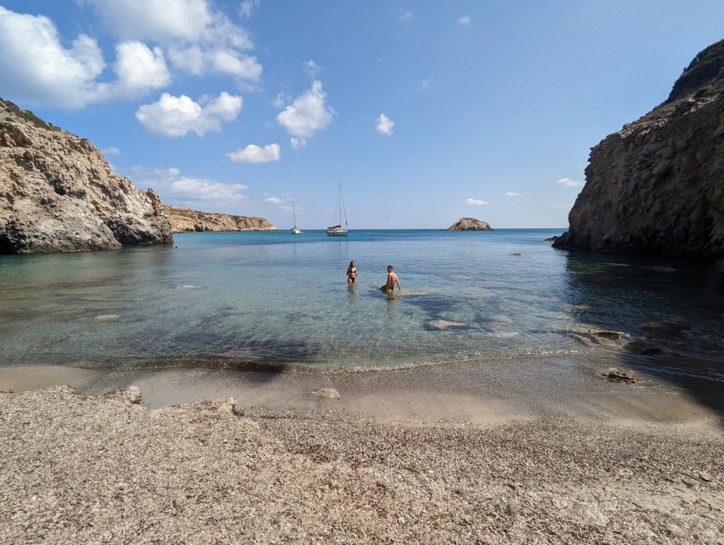 Pour conclure cette journée incroyable, nous avons choisi de nous détendre sur la plage de Firopotamos. Une fois de plus, cette plage nous a surpris par sa beauté à couper le souffle. Ses eaux turquoise et son sable doux nous ont accueillis pour un moment de relaxation. Nous avons simplement profité du paysage magnifique, laissant les vagues apaiser notre esprit.