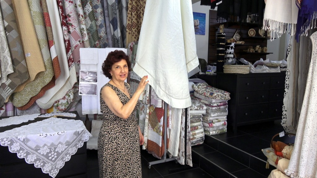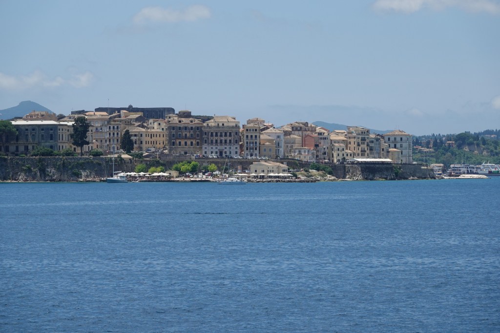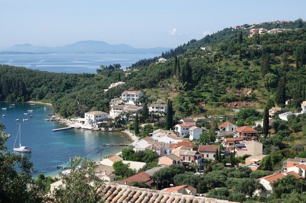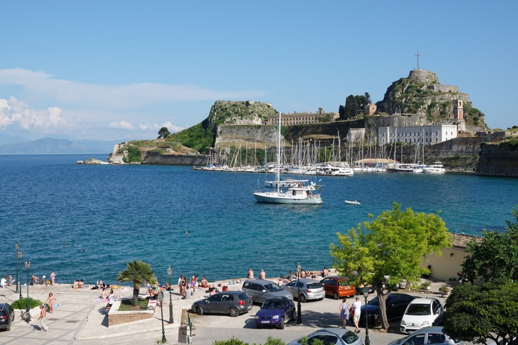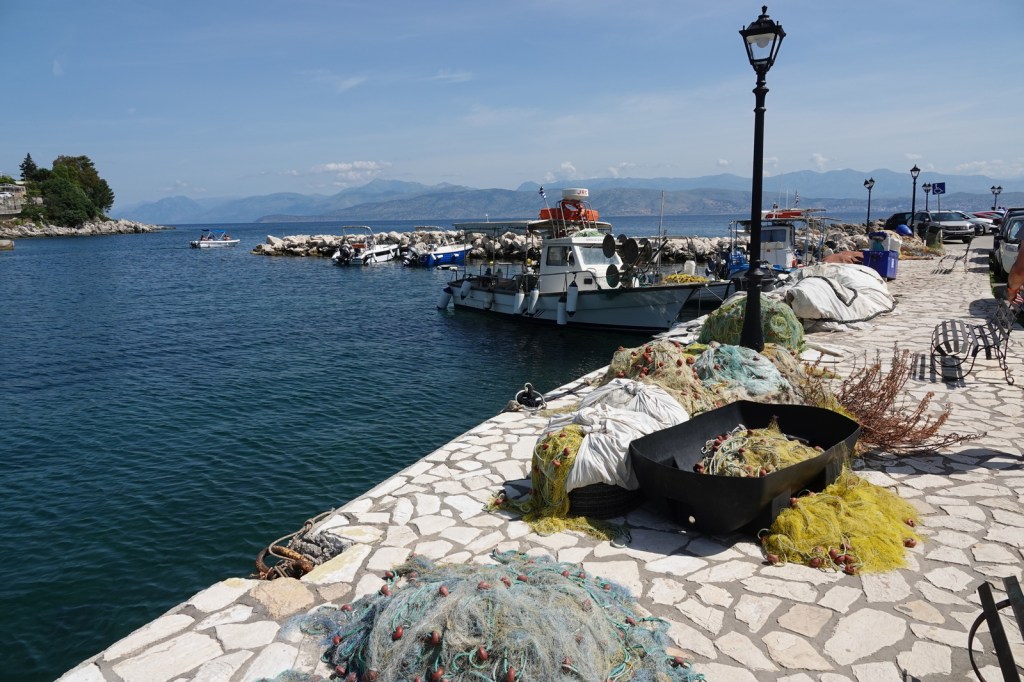 Notre première étape nous conduit à Kassiopi, un village pittoresque situé sur la côte nord-est de Corfou. Nous sommes immédiatement séduits par l’atmosphère tranquille et les ruelles étroites bordées de maisons colorées. Nous nous promenons le long du front de mer, admirant les bateaux amarrés dans le port et les petites tavernes traditionnelles qui bordent la plage. Nous avons rencontré une dame qui a une boutique d’artisanat local. Elle nous a décrit avec enthousiaste à notre grand enchantement toutes les beautés de ses pièces d’artisanat.