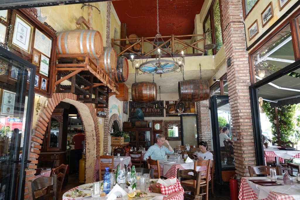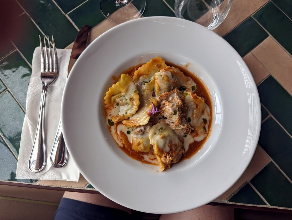 Pour clore cette journée d’exploration, nous nous rendons au bistro Avalle pour un souper mémorable. Ici, nous avons la chance de déguster une spécialité locale : les Tortelloni « Pastitsada ». Ce plat traditionnel de Corfou est un délice pour les papilles, avec sa sauce riche à base de viande et d’épices aromatiques. Nous savourons chaque bouchée, accompagnée d’un verre de vin local, tout en appréciant l’ambiance chaleureuse et conviviale du bistro.