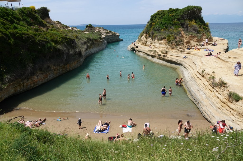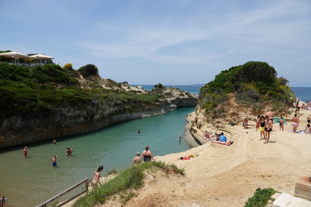 Après avoir quitté Kassiopi, nous nous dirigeons vers le célèbre Canal de l’Amour, situé sur la côte nord-ouest de l’île. Ce lieu enchanteur est entouré de falaises rocheuses sculptées par les éléments au fil des siècles. Selon la légende, si un couple nage à travers le canal main dans la main, leur amour sera scellé pour toujours (dommage, je n’avais pas mon costume de bain). Nous sommes témoins de la beauté de cet endroit magique, où l’eau turquoise et les formations rocheuses spectaculaires créent un paysage digne d’un conte de fées.