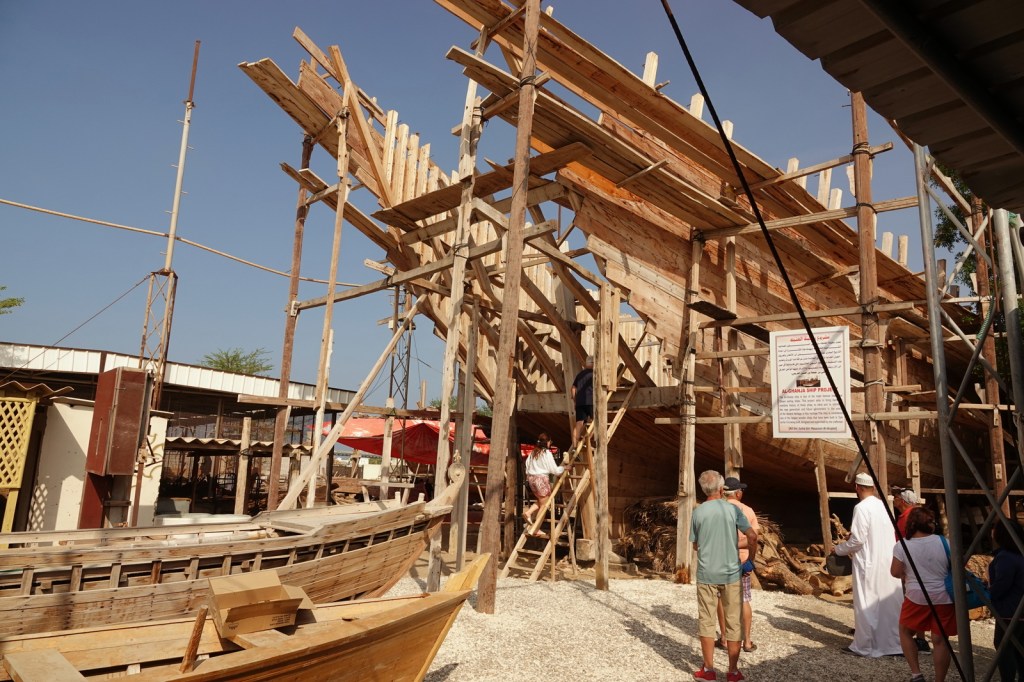Ensuite, nous avons continué notre voyage par Sur, une ville portuaire située à l’est d’Oman. Sur est connue pour sa tradition navale et ses chantiers de boutres (dhows), ces voiliers typiques de l’océan Indien. Nous visité l’un de ces chantiers artisanaux, où nous avons pu observer les charpentiers travailler le bois.