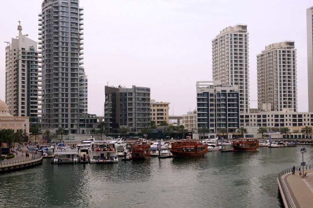 Nous continuons notre route vers la marina de Dubai pour le plaisir d’y voir les boutres (Dhow) qui attendent les touristes pour une visite de la marina et des environs.