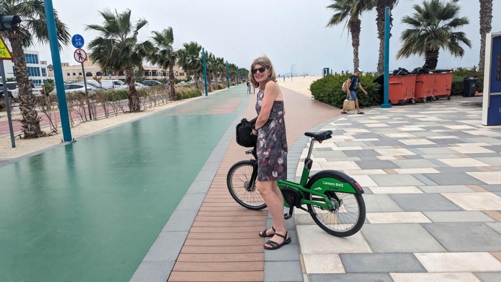 Nous quittons Dubai cette nuit, un voyage bien rempli qui nous a fait découvrir une culture remplie de tradition. Ma plus grande surprise fût l facilité avec laquelle nous pouvons nous déplacer avc le métro, le tramway, le monorail, les taxis et notre dernière découverte : les vélos à assistance électrique. Le mélange des races et religions y semblent harmonieux et l’accueil est toujours chaleureux. C’est une ville très sécuritaire et remplie de superlatif.
