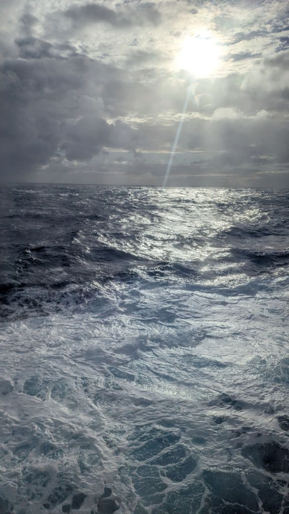 Étonnamment, le temps file à toute allure. Entre les discussions animées avec d’autres croisiéristes (qui refont en détail le récit de l’attente d’hier à Dublin), quelques parties de jeux et un film visionné au chaud dans la cabine, on ne voit pas l’océan défiler.