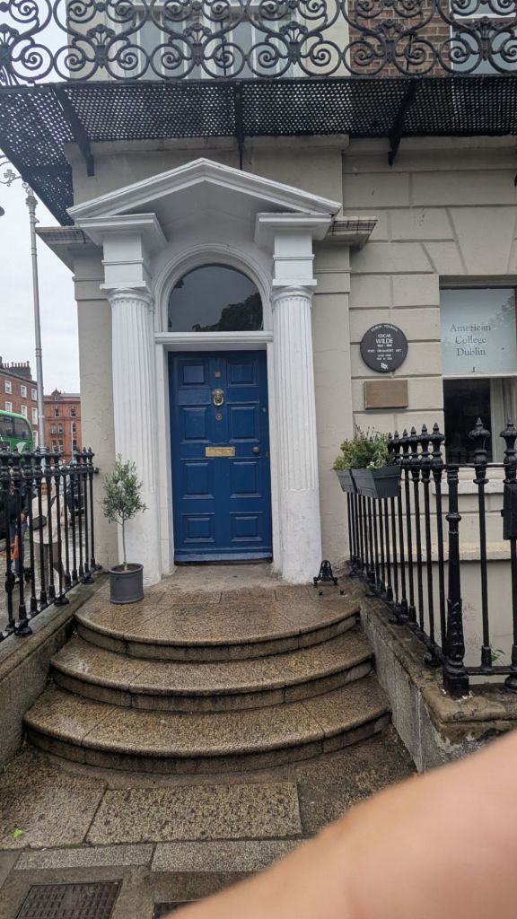 Armés de notre audioguide préchargé (vive la technologie !), nous découvrons la maison d’Oscar Wilde et sa statue colorée, fièrement installée dans un charmant jardin. Oscar, allongé nonchalamment, semble toujours prêt à lancer une de ses répliques célèbres : « L’expérience est le nom que chacun donne à ses erreurs. »