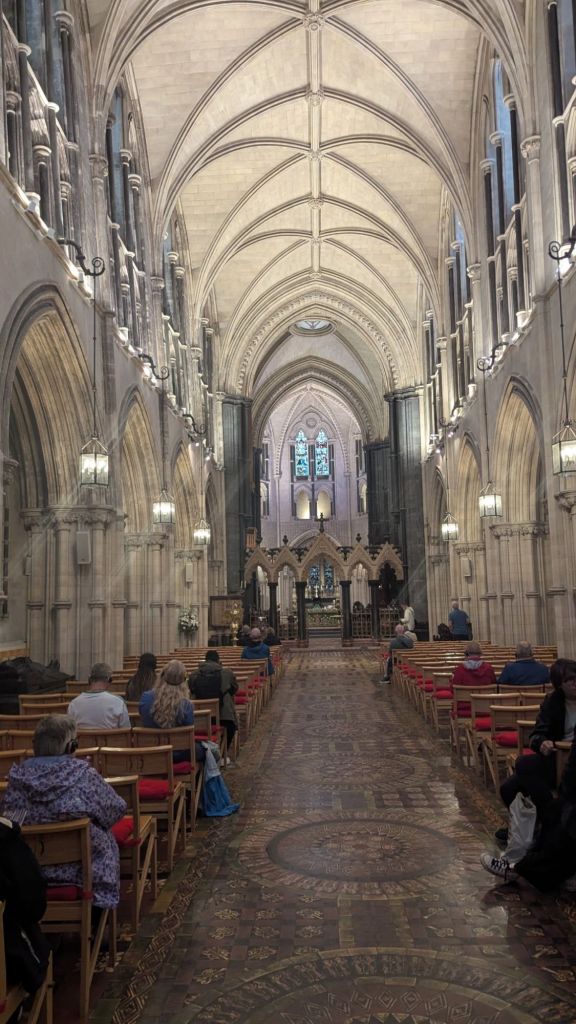 Prochain arrêt : Christ Church Cathedral. L’entrée inclut un audioguide qui nous révèle mille et une anecdotes sur ce monument médiéval. On y apprend des faits historiques fascinants, certains véridiques, d’autres qu’on oublie presque aussitôt.