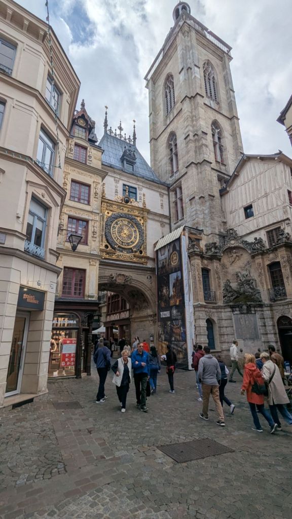 Arrivés à Rouen, nous attaquons la ville comme des sprinters. Première constatation : Jeanne d’Arc est partout. On dirait qu’elle a signé chaque rue, chaque église, chaque vitrine de souvenir.