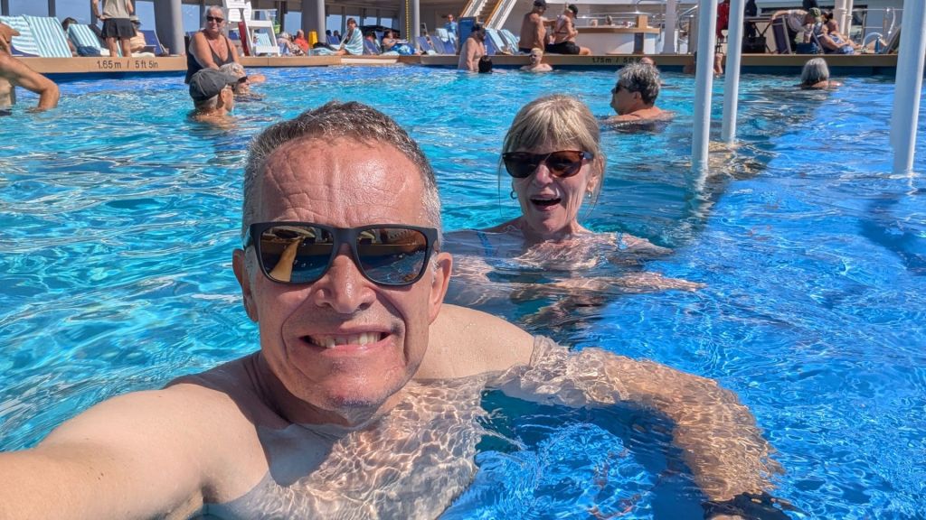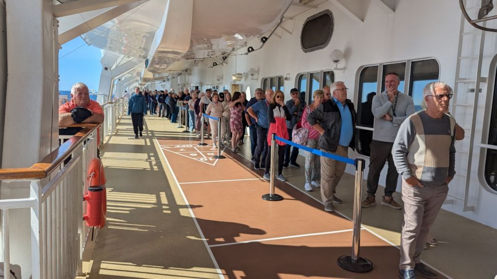 Aujourd’hui, c’est une escale express : arrivée à 7 h, départ à 15 h (traduction version navire : 14 h 30, juste pour tester les retardataires et voir qui aime courir).