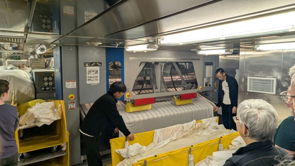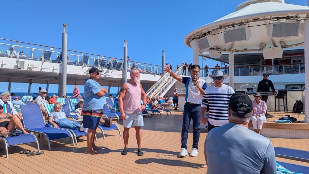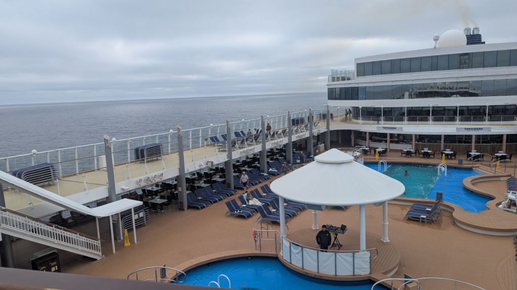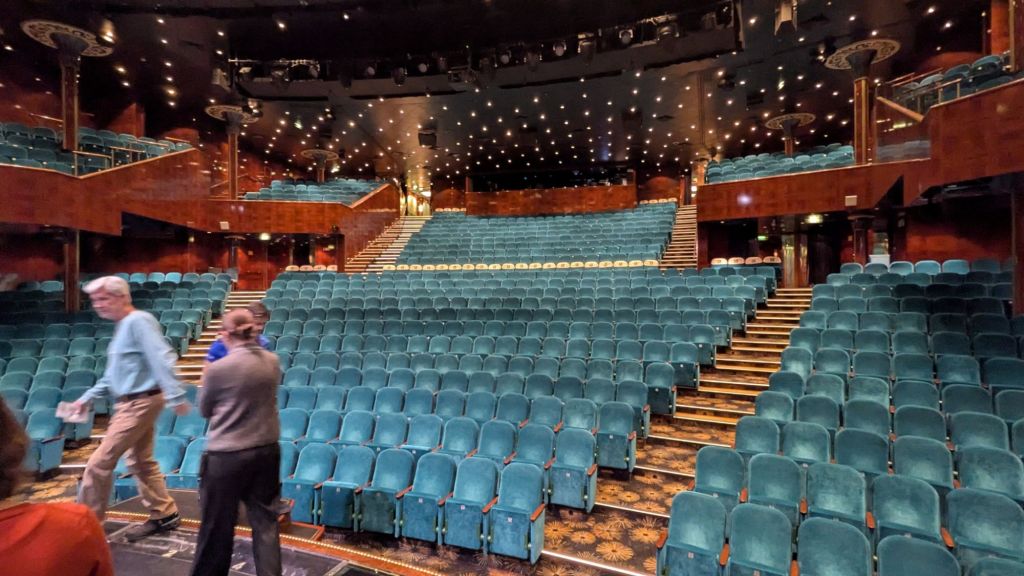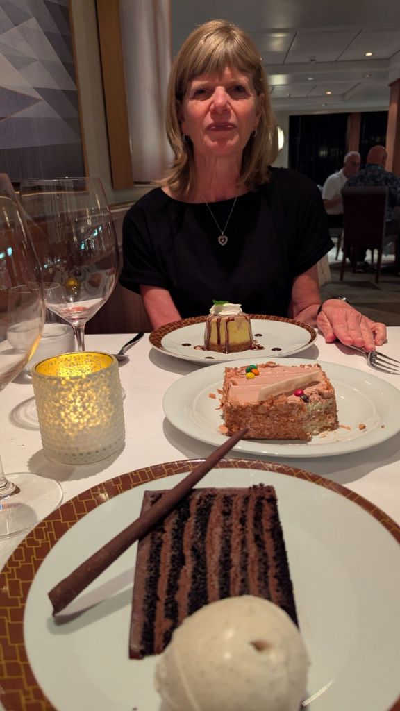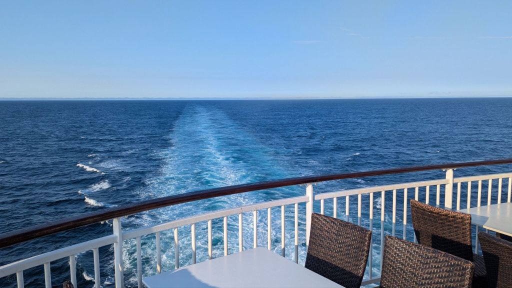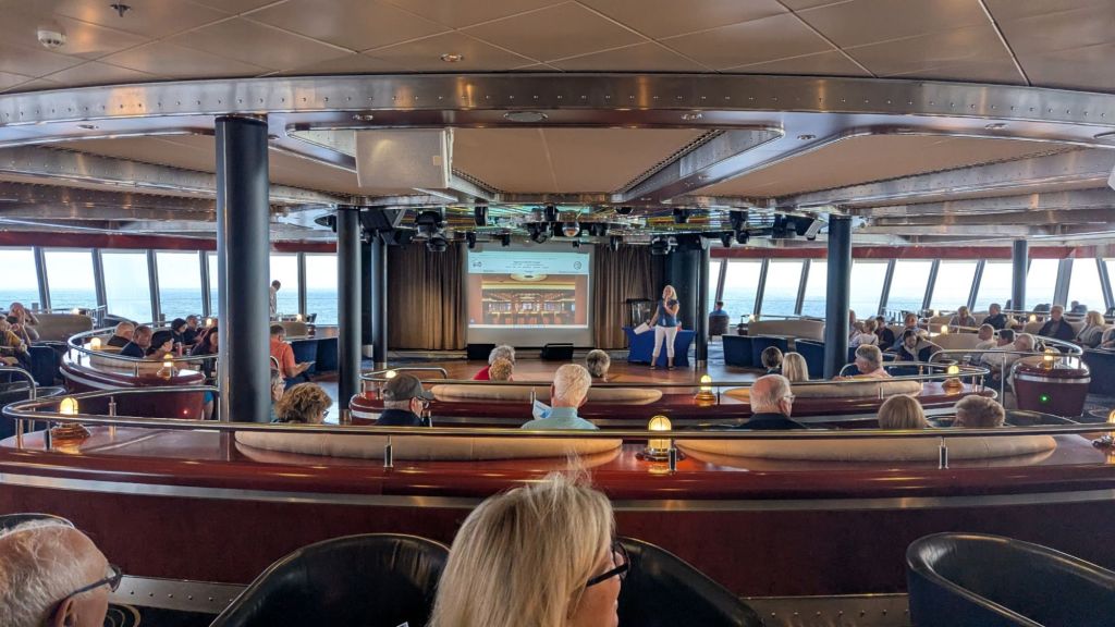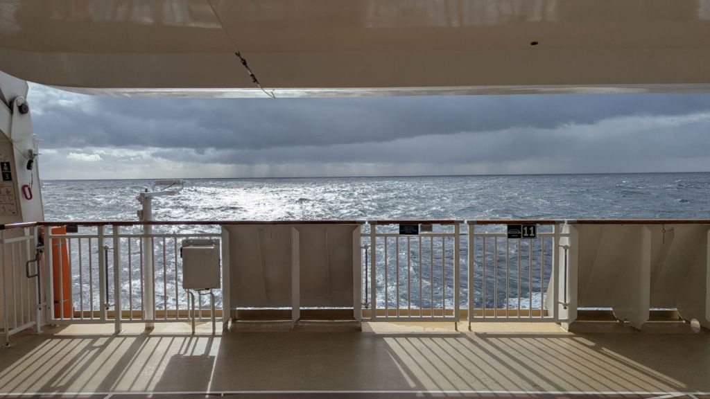 Retour ensuite au navire, cette fois en navette (on a choisi la sagesse plutôt que les courbatures). Et pour clore la journée : souper et spectacle… acrobatique, qui a finalement été remplacé par un spectacle d’hypnose. Est-ce vraiment à cause du mauvais temps (la tempête nous ayant rattrapés), ou le directeur de croisière s’est-il fait hypnotiser par l’artiste pour lui céder la scène ? Mystère…