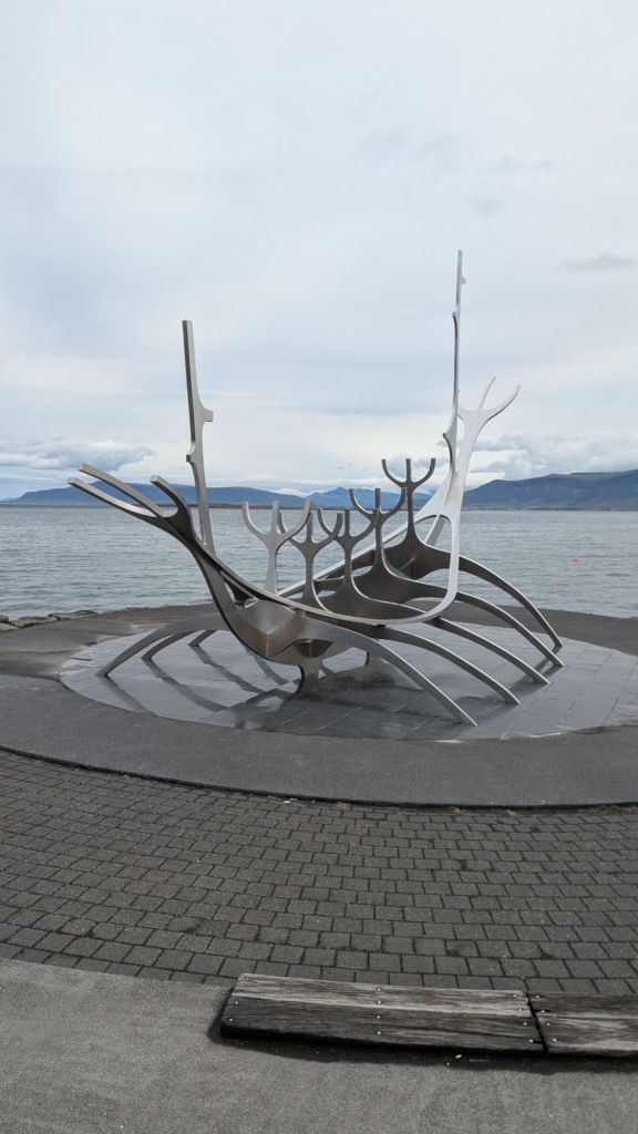 Deuxième arrêt : Sun Voyager, cette grande sculpture qui ressemble… soit à un squelette de poisson géant, soit à un bateau viking minimaliste. Les avis divergent, et vu la tête des autres visiteurs, nous n’étions pas les seuls à hésiter.