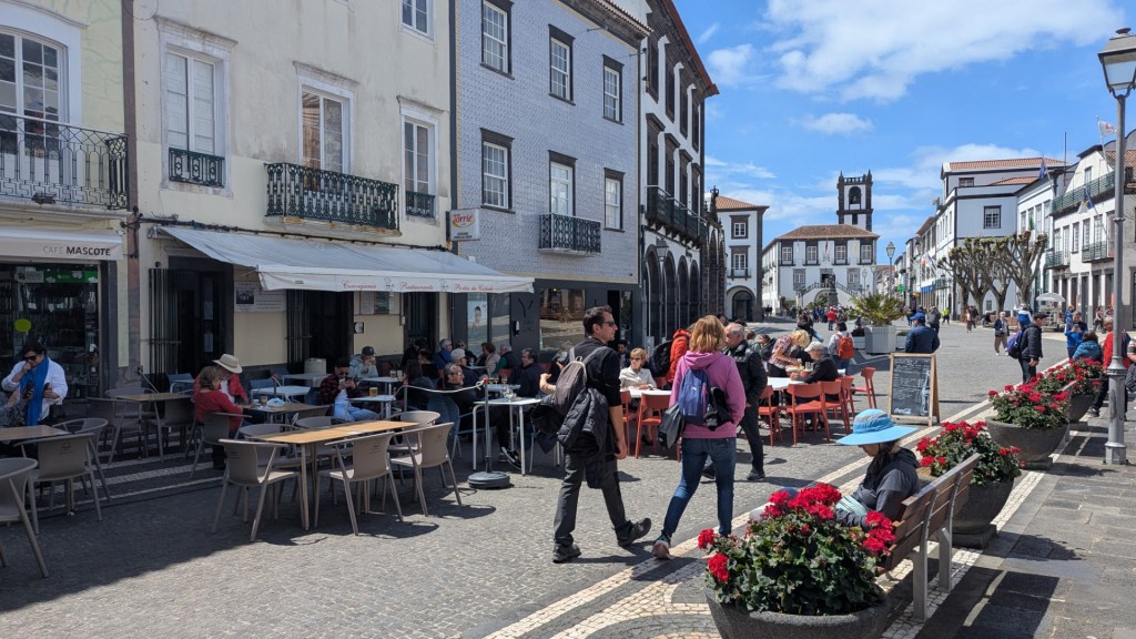 Notre dernière journée aux Açores s’est levée sous un soleil radieux, comme pour nous offrir un dernier clin d’œil avant le retour. Nous voulons savourer ces dernières heures dans les rues de Ponta Delgada, de flâner et de s’imprégner encore un peu de l’ambiance azoréenne.