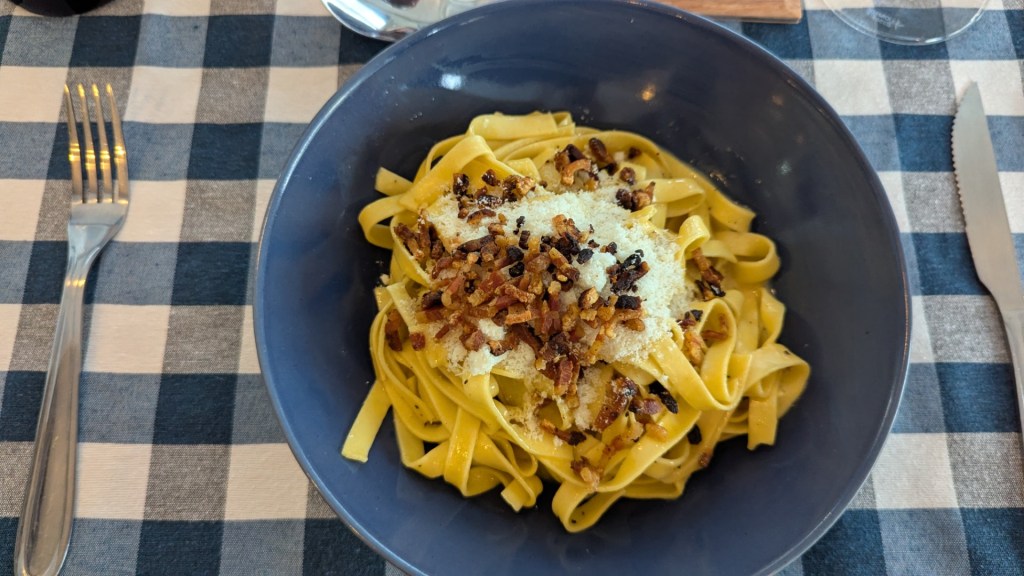 L’heure du midi arrive, et avec elle la question toujours cruciale du choix du restaurant. Après quelques hésitations, nous optons pour le Louvre Michaelense, et quelle belle surprise ! L’endroit est charmant, l’ambiance détendue, et le repas à la hauteur : lasagne généreuse et salade de chou-fleur rafraîchissante. Simple, savoureux, parfait.
